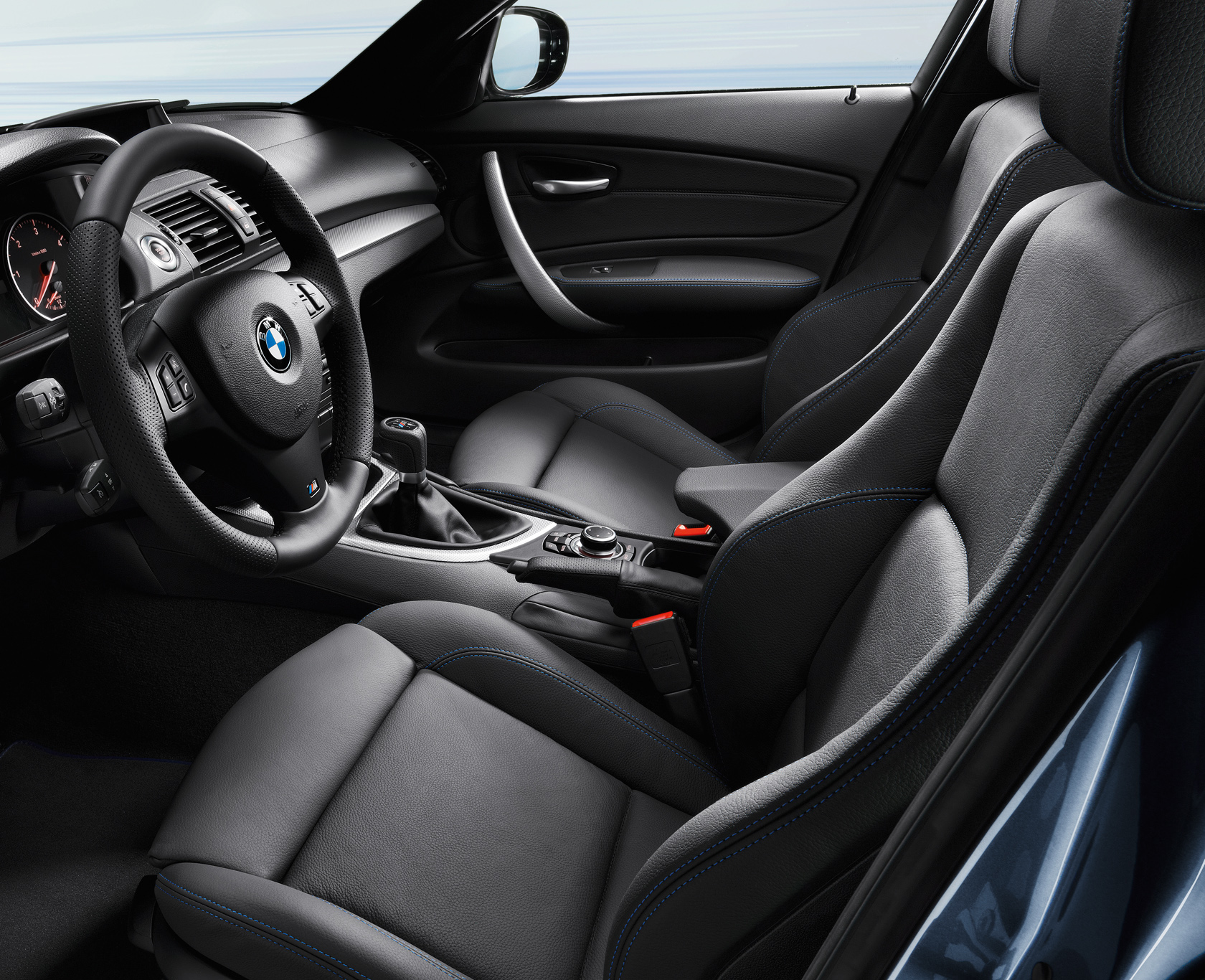 The sporting and exclusive flair of the interior is highlighted by chrome-plated entry trim bearing the name “BMW Edition“, stainless-steel pedals, an M footrest, an M sports steering wheel, an M gearshift lever complete with its gaiter made of soft nappa leather, interior trim in Aluminium Glacier Silver and roof lining in anthracite colour. As yet a further highlight the BMW 1 Series Sport Edition comes with sports seats for the driver and front passenger in a combination of cloth and Sensatec featuring blue ornamental stitching around the seat bottoms and headrests. And to provide the final touch the footmats are adorned by blue piping.