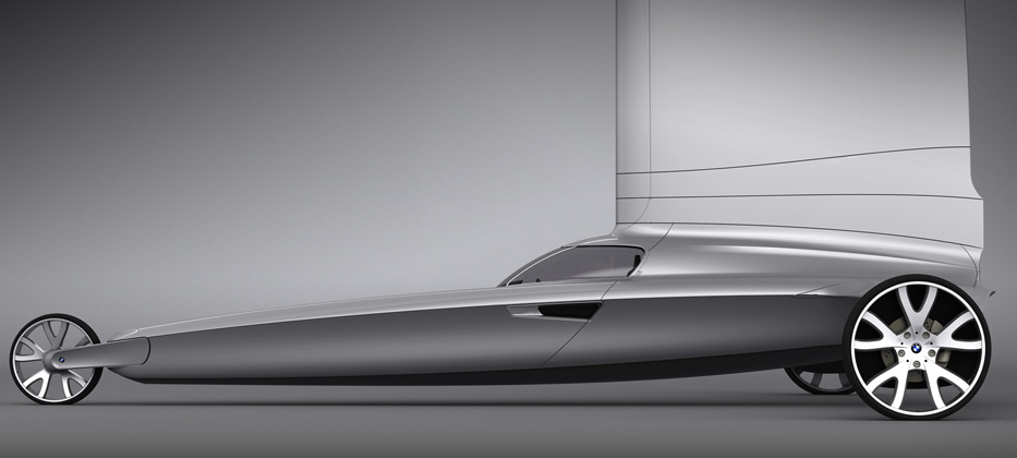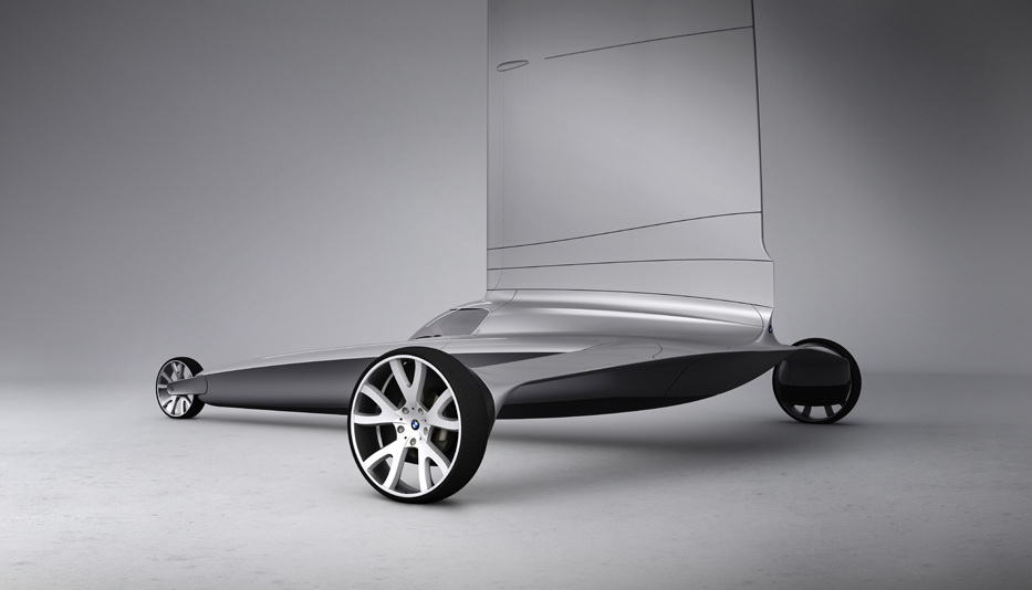 Purely an exercise and not sponsored by BMW, the renderings show a premium version of a sail car/land yacht that combines the “distinctive style and emotional character” of a BMW with the “exclusiveness of a yacht, powered by an environmental force- wind”.