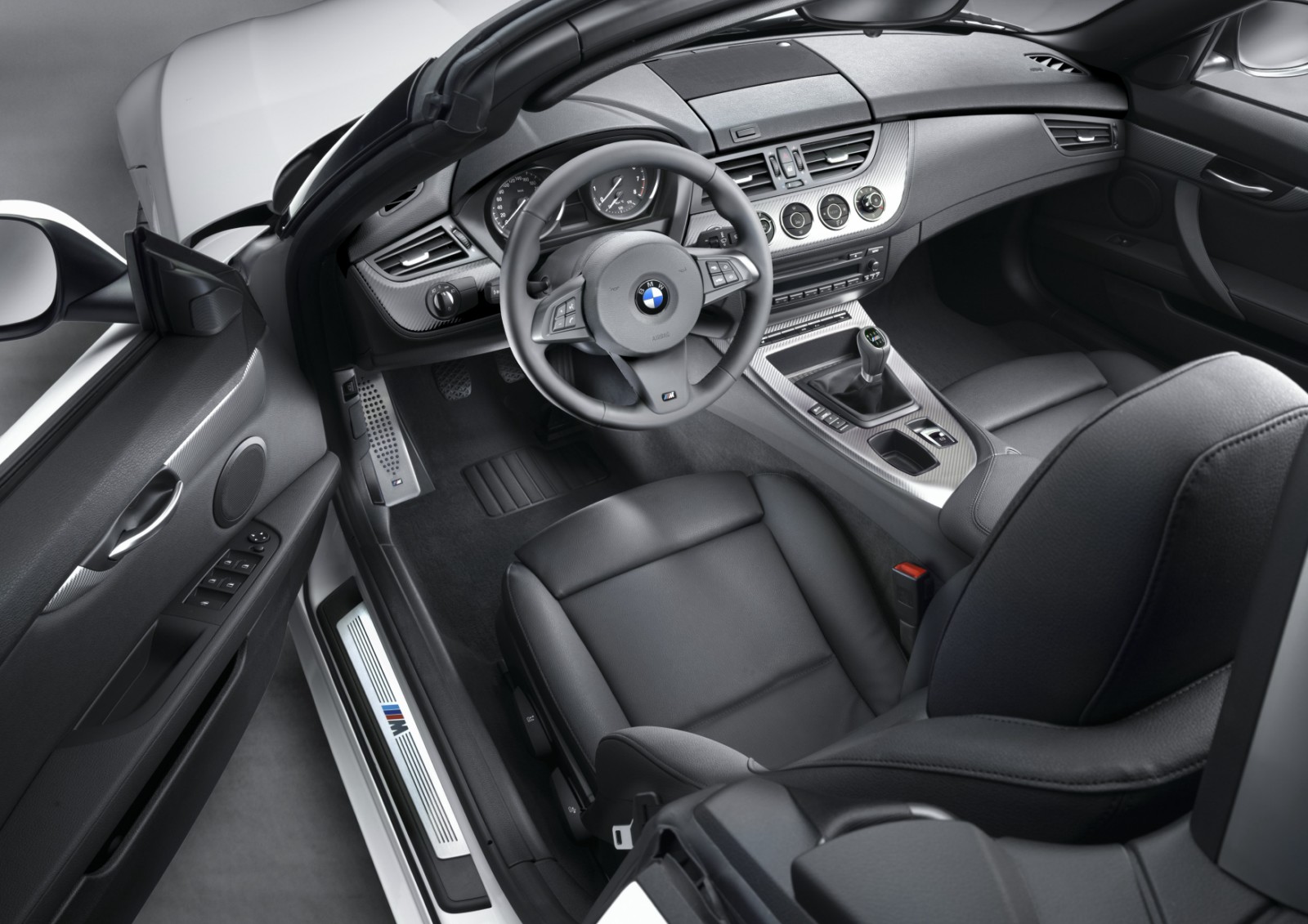 Inside, we have an M leather steering wheel, M door sills and sport seats, also as usual, the headliner anthracite. Models with manual transmissions also get a special M gear lever knob in leather design.