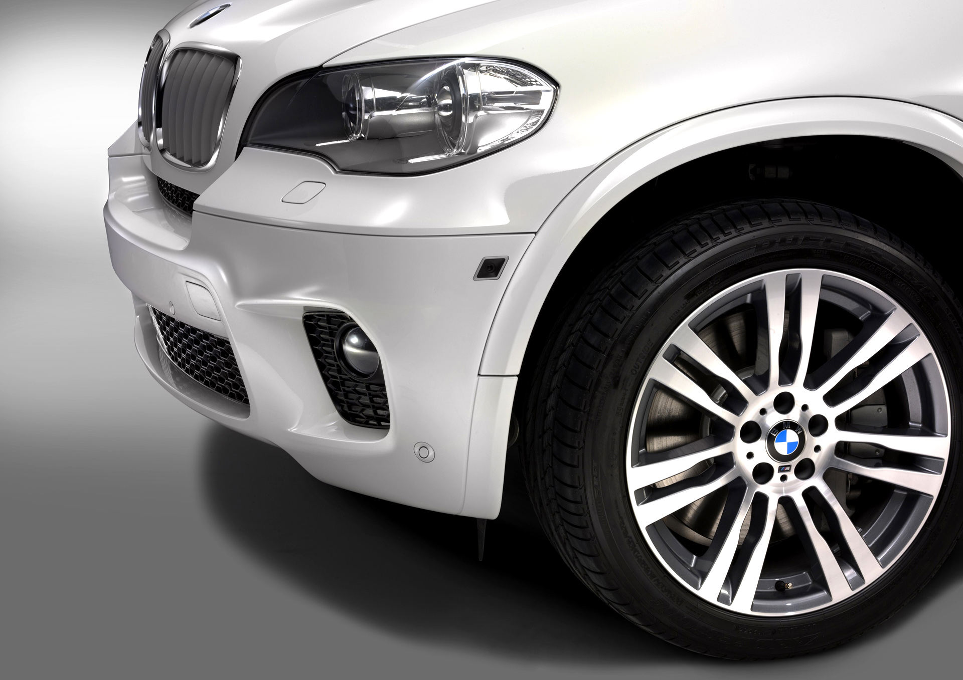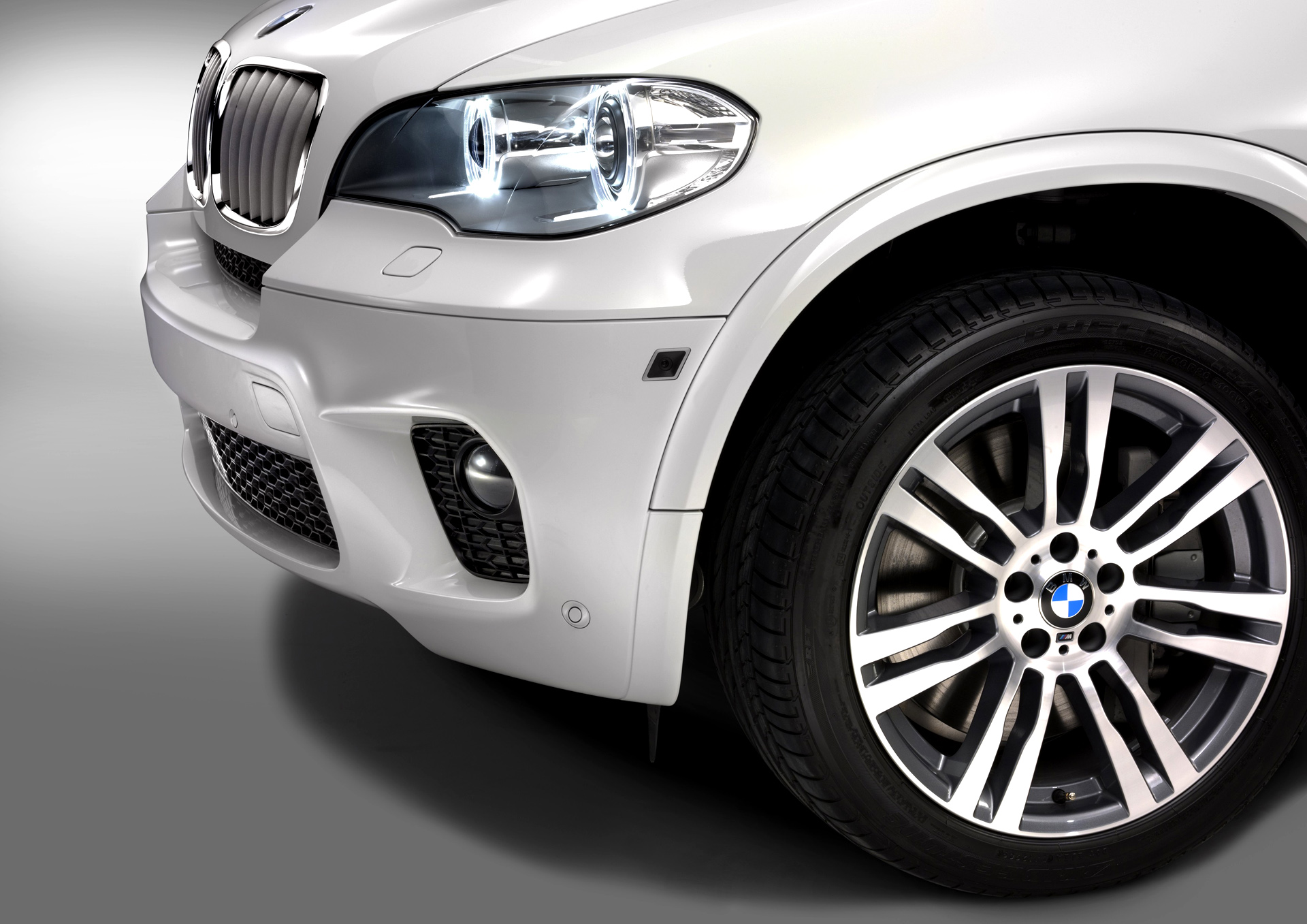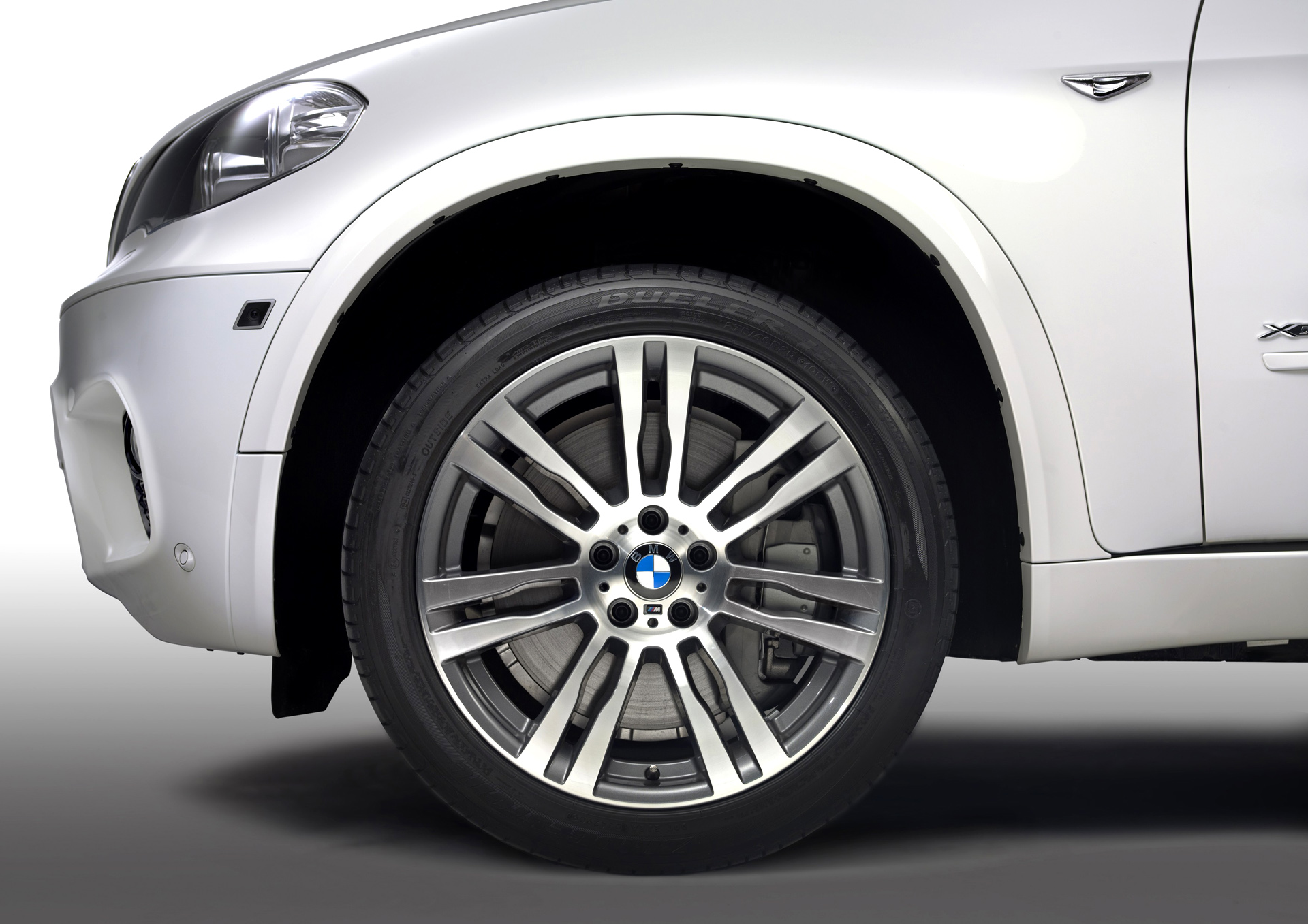 As an alternative, M light alloy wheels in 20-inch format are optionally available, either in two colors or in burnished finish. In both instances, a special mixed tire selection is used on the front and rear axle which is designed specially for the BMW X5. Even in the 6-cylinder versions, the tailpipes of the exhaust system bear the contours characteristic of V8 engines.