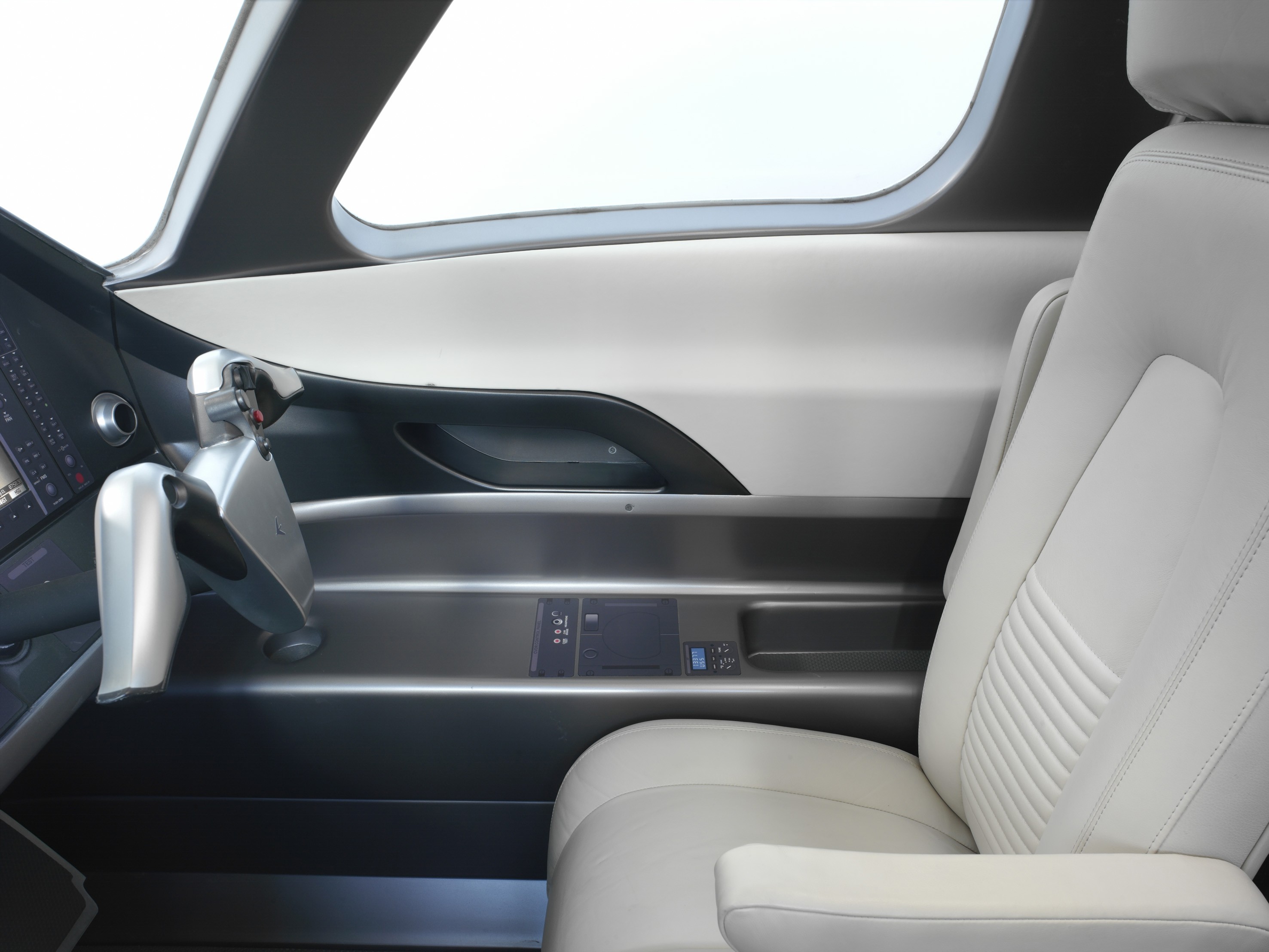 The design team cast a critical eye over almost every detail of a conventional executive jet and questioned the traditional definition of opulence as well as the symbolism of the worlds of color, materials and form both in the cabin and the cockpit. For example, knowledge of driver demands gained in the automobile industry was integrated into the cockpit design. The Phenom cockpit currently provides the pilots with the most generous amount of space on the market. Indeed, even in the next largest class of jets, the Phenom pilot’s freedom of movement is rarely matched. The question of durability, inherent value and premium aesthetics in the interior has been resolved as seldom before in executive jets. Baggage compartments, which are integrated into the side walls and beneath the seats, and multiple other details in the cabin illustrate how the transfer of cross-industrial know-how resulted in design solutions for Embraer’s executive jets.