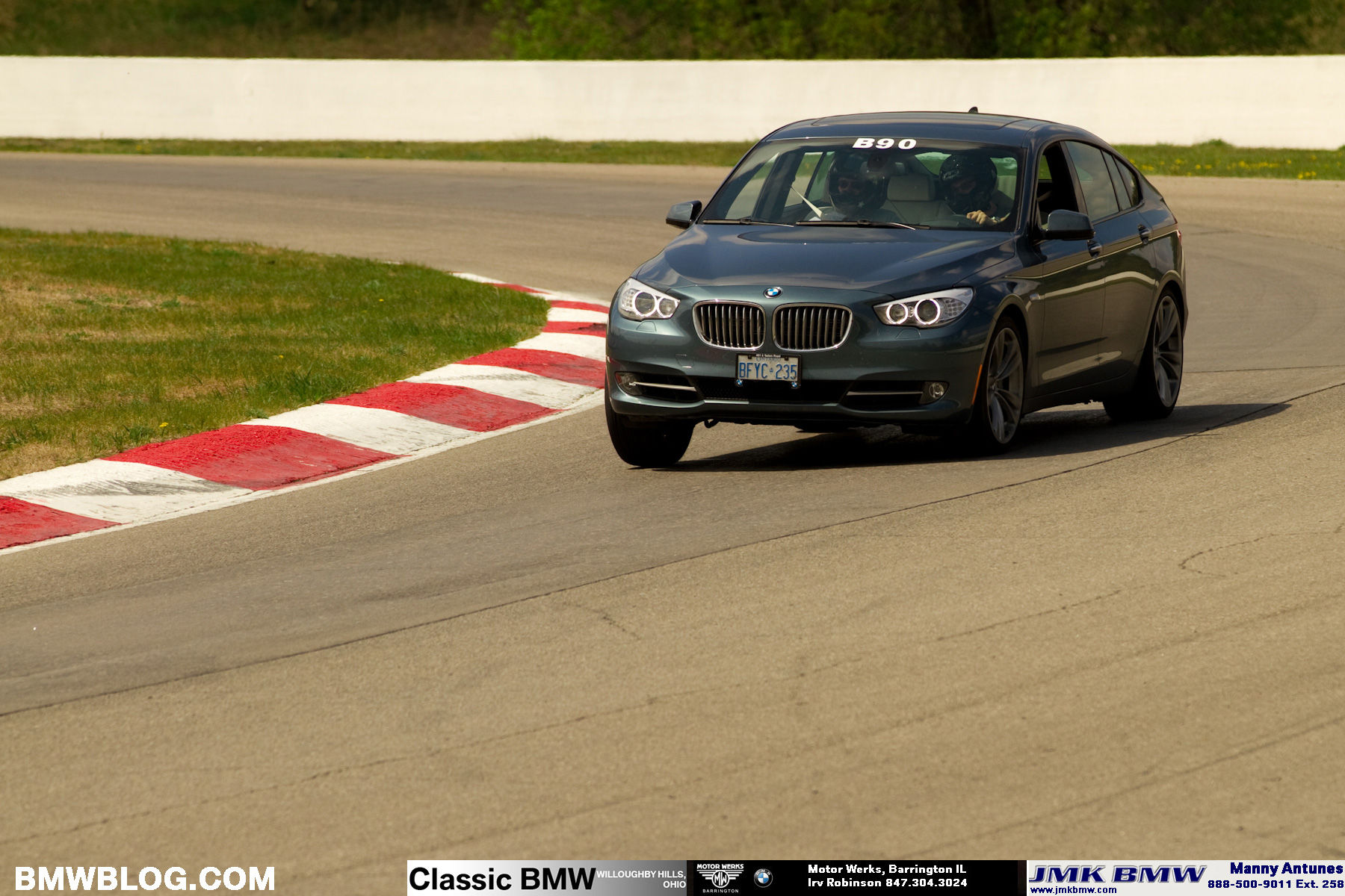 Hard on the brakes and it’s already time for another lap! Car after car is blue-flagged and passed by this large, practical “family car” – including several BMW sports cars lapping the track!