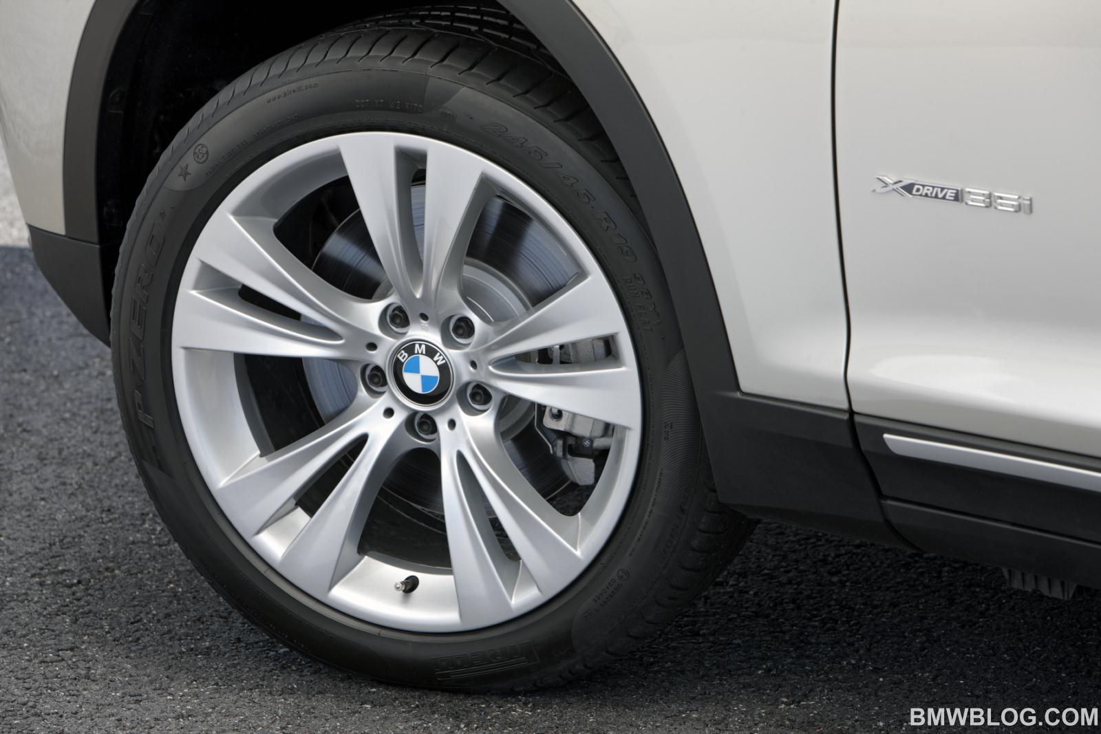 The profile of the new BMW X3 is also characterized by a unique interpretation of typical BMW X design features. Powerfully flared wheel arches and the short front and rear overhangs emphasize the robust character of a BMW Sports Activity Vehicle. The dynamic appearance of the silhouette is accentuated by three characteristic lines. The new BMW X3’s brand-typical upper contour line at door handle level rises steeply at first within the front wheel arch area, then flows gently to the rear. Two additional subtle lines follow this contour line above the wheel arches.