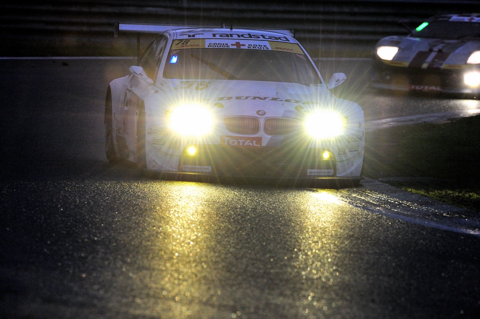 As darkness descends, BMW M3 GT2 number 79 continues to lead at the Spa-Francorchamps 24 Hours (BE). After a double stint by Dirk Werner (DE), Dirk Adorf (DE) took over the wheel as dusk set in. He will hand over to Dirk Müller (DE) during the next stop. Following a long pit stop for a technical check, BMW M3 GT2 number 78 fell back from second to seventh at about 21:30hrs. Pedro Lamy (PT) has replaced Uwe Alzen (DE) in the cockpit. He will swap places with Jörg Müller (DE) at the next changeover.