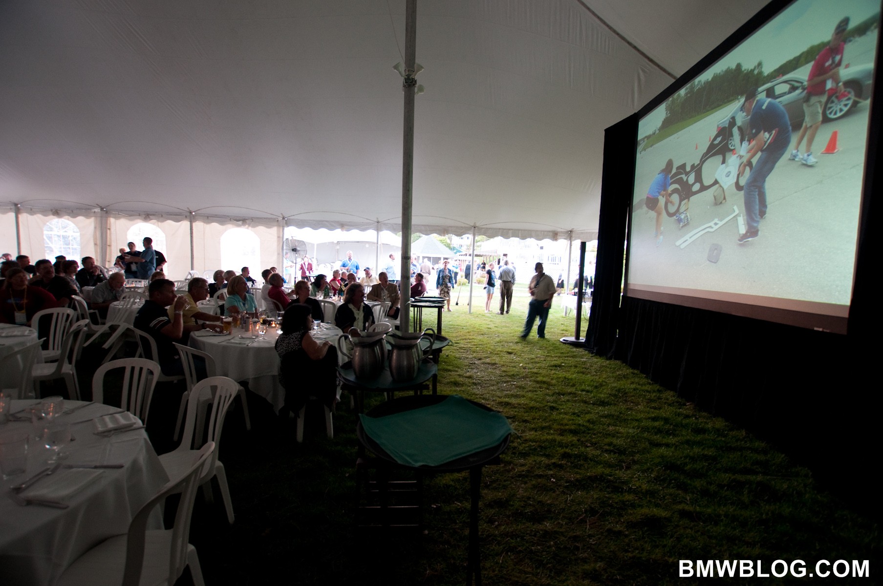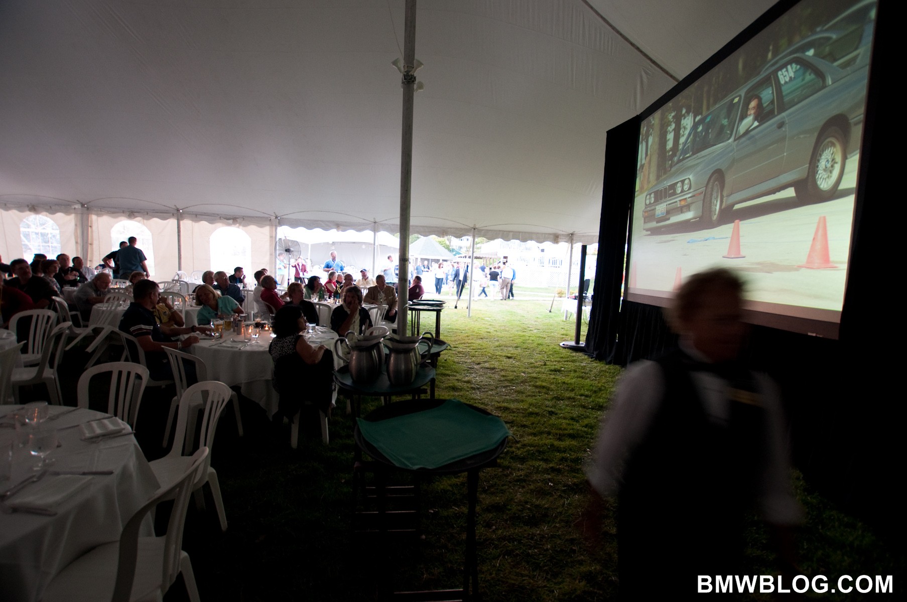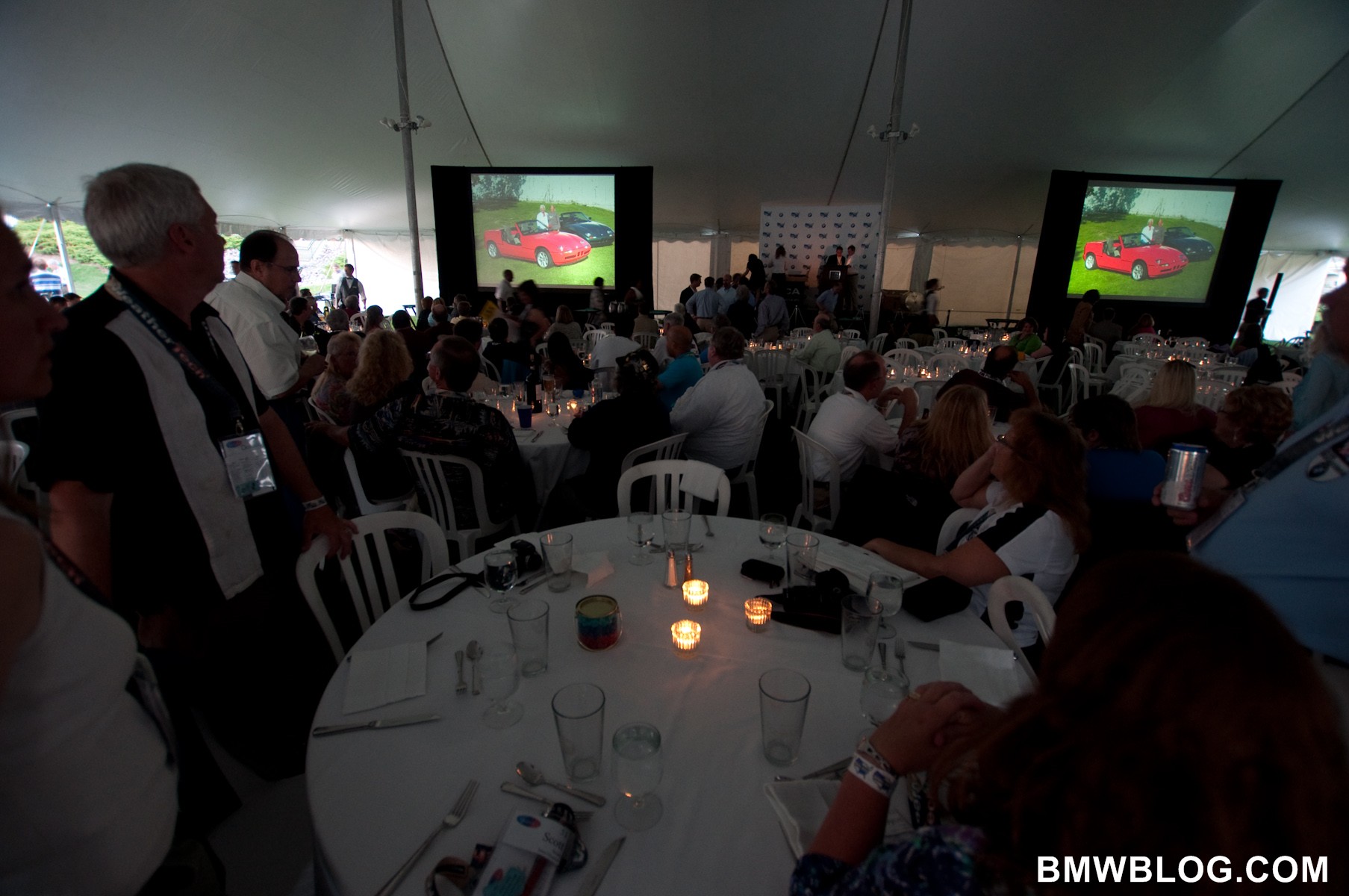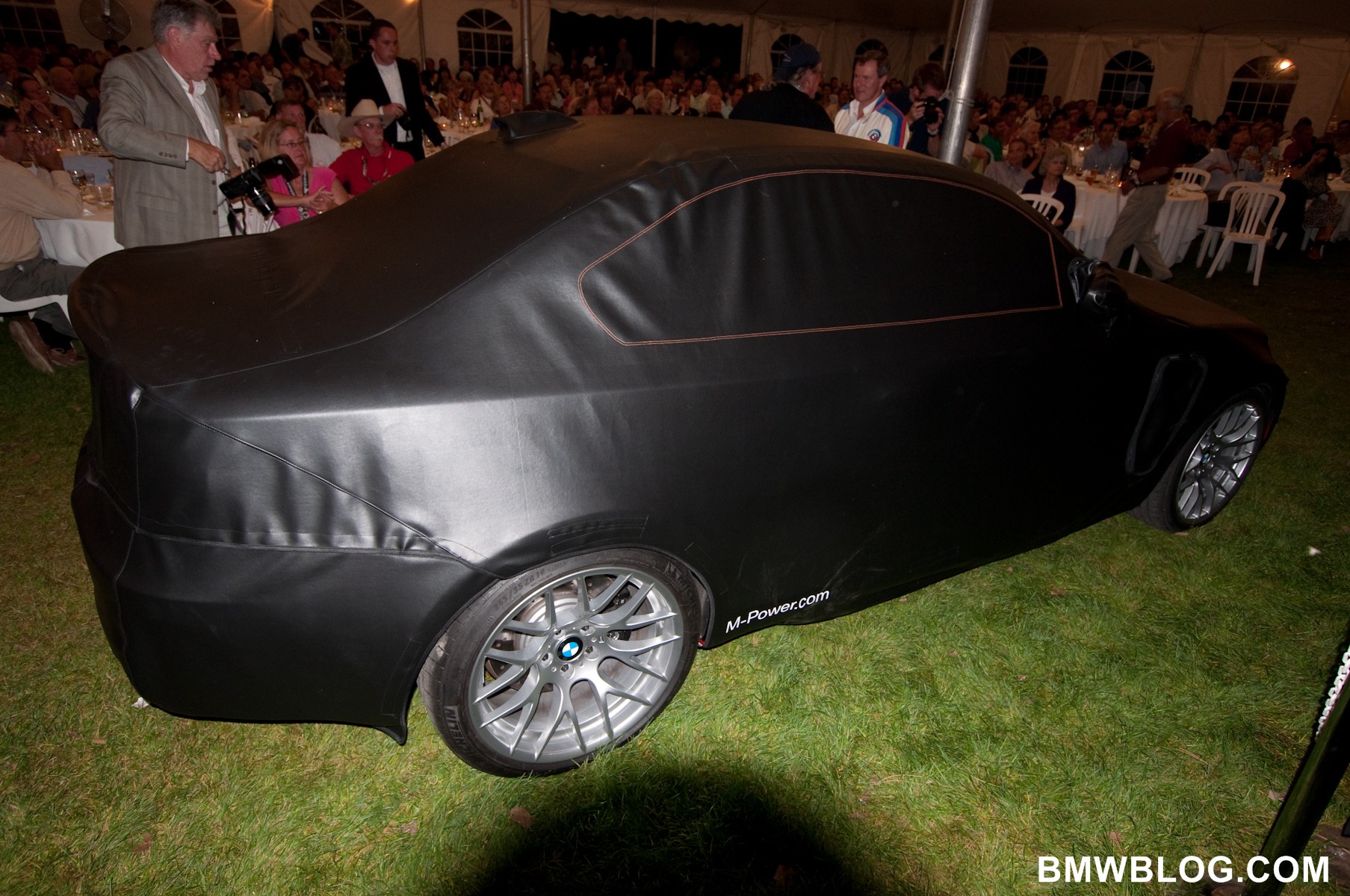 BMW Car Club of America’s summer bash brought out the best from BMW. A race win in ALMS, beautiful classics, enthusiastic club races and finally… a strip tease from BMW’s new 1M Coupe. Enjoy the photos below, all captured at BMW CCA’s dinner end of Oktoberfest dinner party where BMW gave the crowds a partial unveiling.