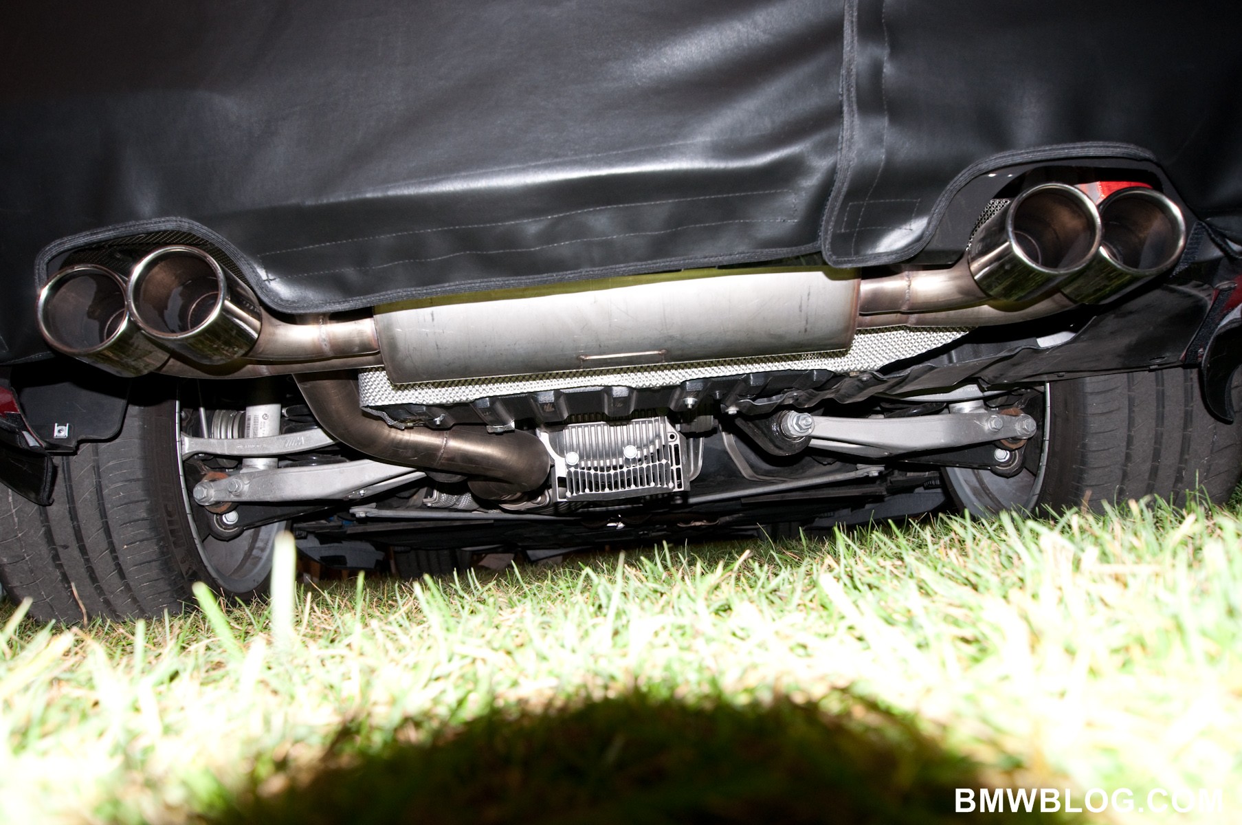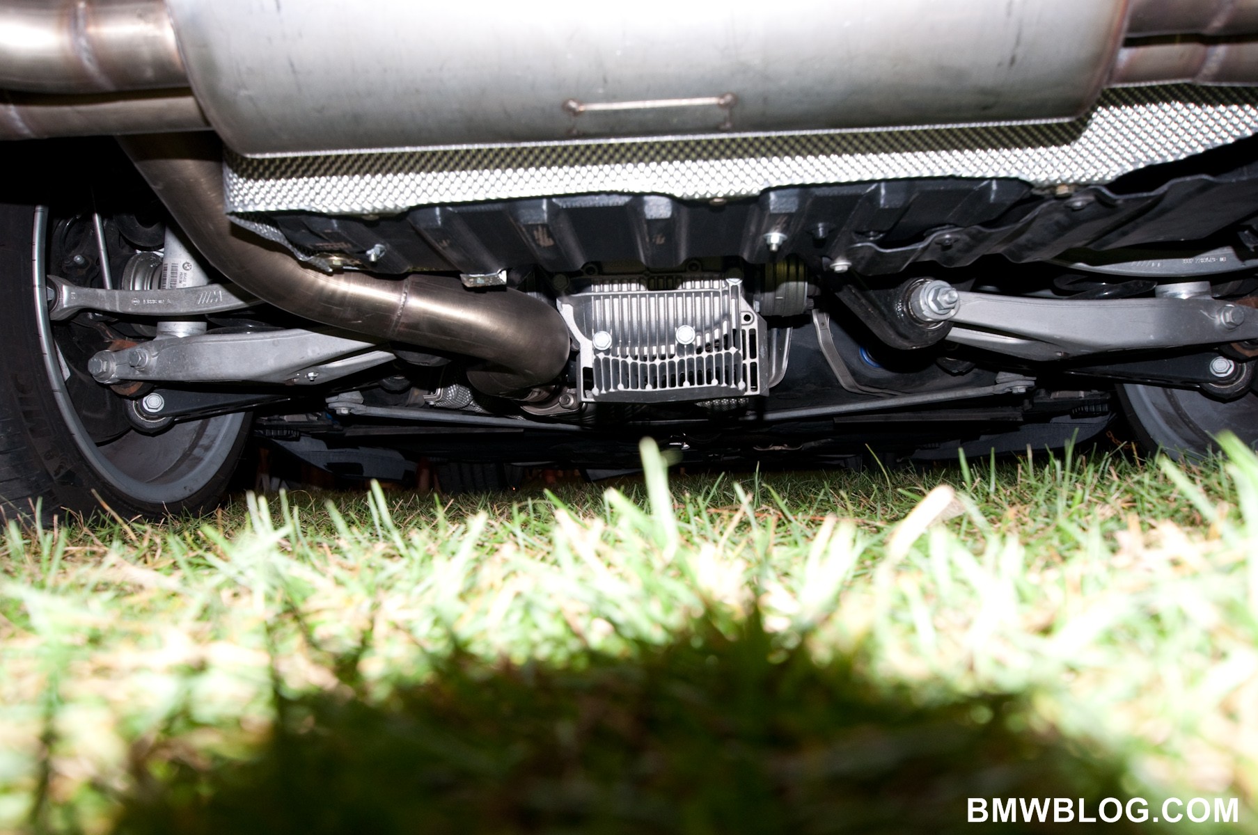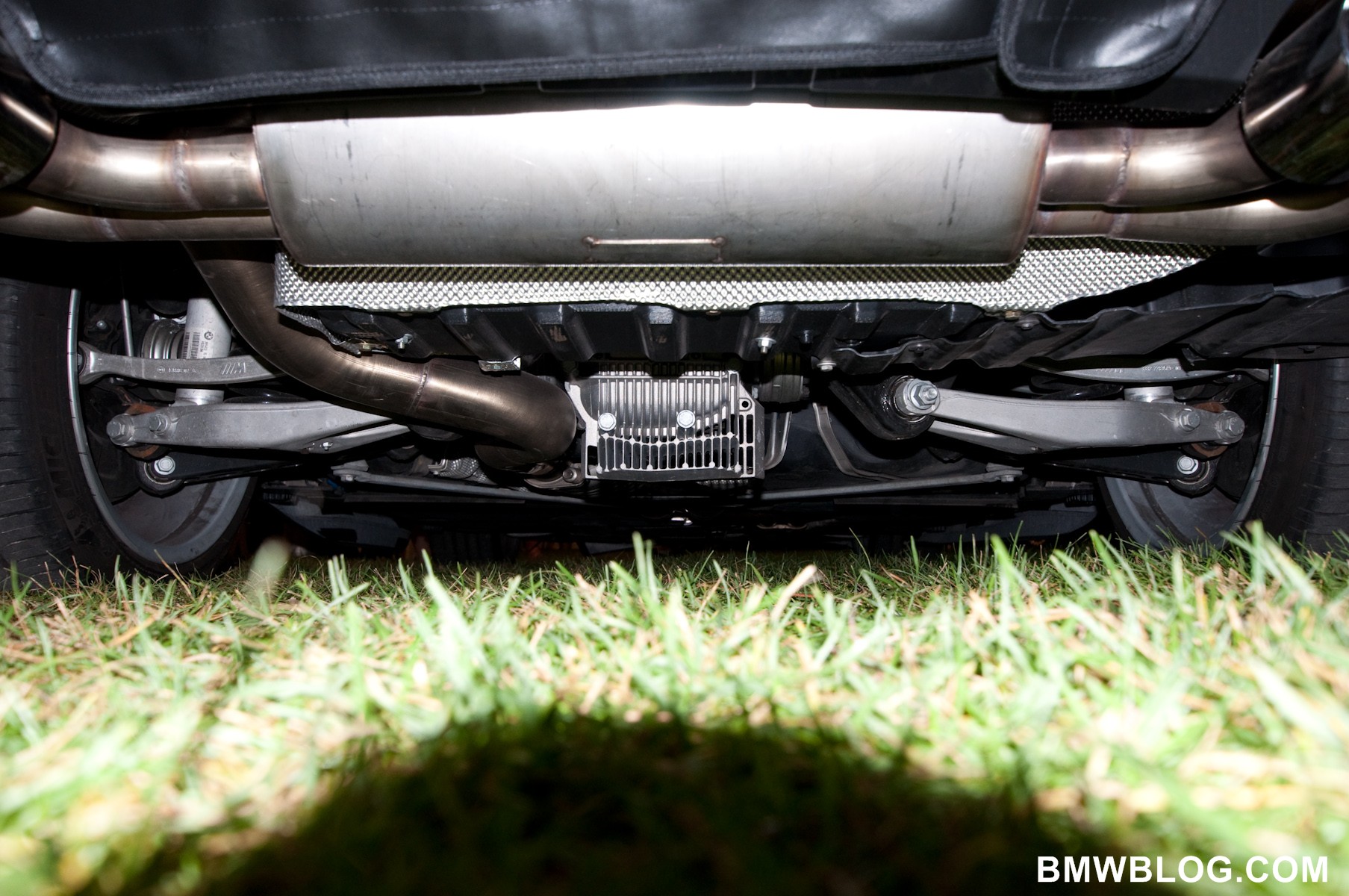Note the beautiful underbody, exhaust, and forged aluminum suspension components.