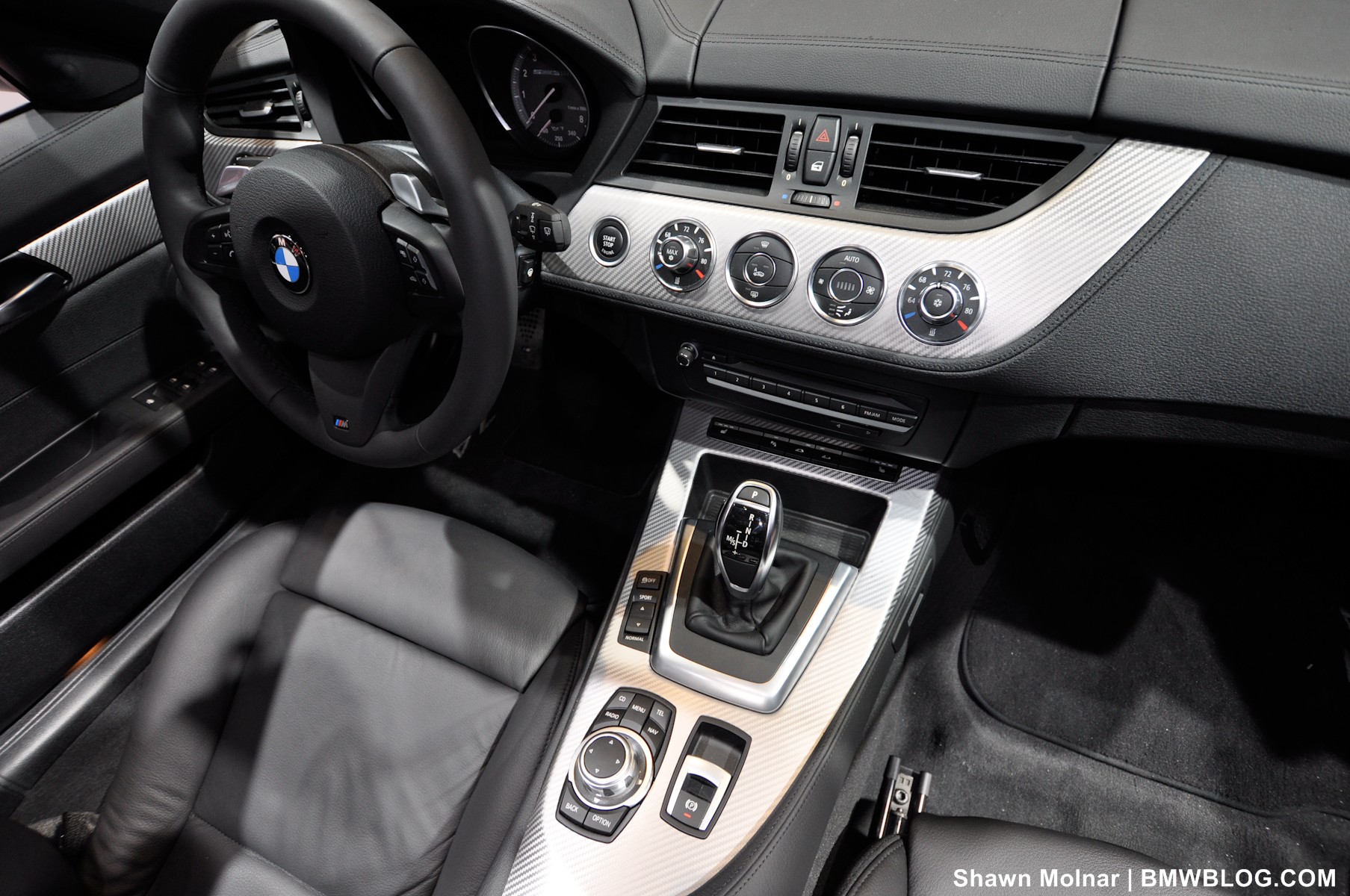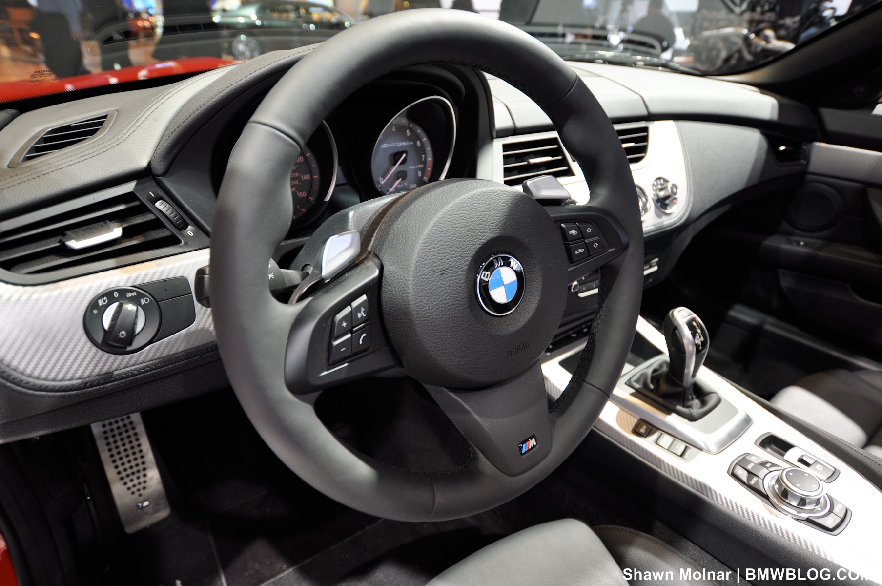 Second, we are absolutely baffled by BMW’s decision to fit teeny “push/pull” shift buttons on the steering wheel. What an absurd choice to make when rummaging through Munich’s parts bin: “Let’s see, we have the preferred paddle shifters as created by Ferrari and fitted to modern F1 cars… and in this bin we have some kind of oddly shaped children’s toy.” Why pick the latter? In a BMW that is otherwise performance focused and highly tuned, by the M division no less, we are simply stupefied by the silly shift buttons fitted as the only option on this Z4 sDrive 35iS. They are annoying, finicky, too small – ultimately pointless. Just leave the transmission in auto mode because you will probably be faster as you quit fumbling for the cheap-feeling buttons.