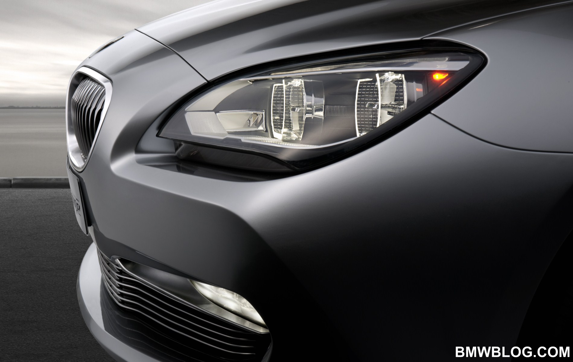 The characteristic front-end appearance of the BMW Concept 6 Series Coupé is partly down to the typical BMW twin round headlights. The outward-pointing top part of the trapezoidal headlight housing guides the eye to the widely flared wheel arches. With this concept model, BMW is for the first time presenting all-LED headlights with Adaptive Headlight functionality. LEDs are used for all functions, from the dipped and main beam to the sidelights and daytime running lights, and the direction indicators. The LED accent lights which cut across the top of the twin round headlights create the hooded, intent look characteristic of BMW models.
