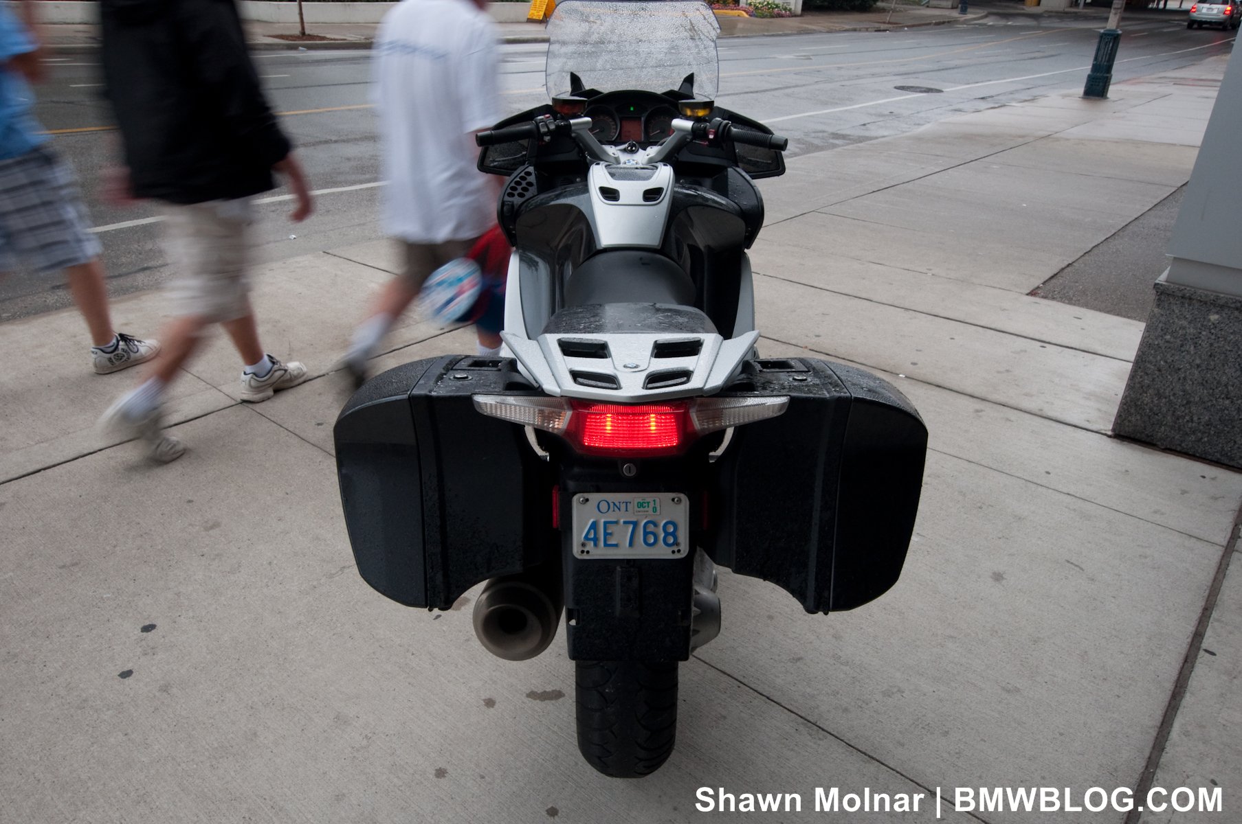 Speaking of bumps, Toronto roads are infamous for their rim-bending, tire-blowing, rider-throwing moguls. Herein lies one of the R1200RT’s greatest talents: soaking up the big ones. So severe are some Toronto roads that I literally feel like I’m dirt-biking while riding stiffly sprung sport bikes along the cratered asphalt; not so with BMW’s RT. Front Telelever suspension isolates steering function from dampening and incorporates anti-dive geometry, allowing for composure over bumps, even when banked in a turn. BMW’s rear Paralever suspension is rock solid, free of twist or play.