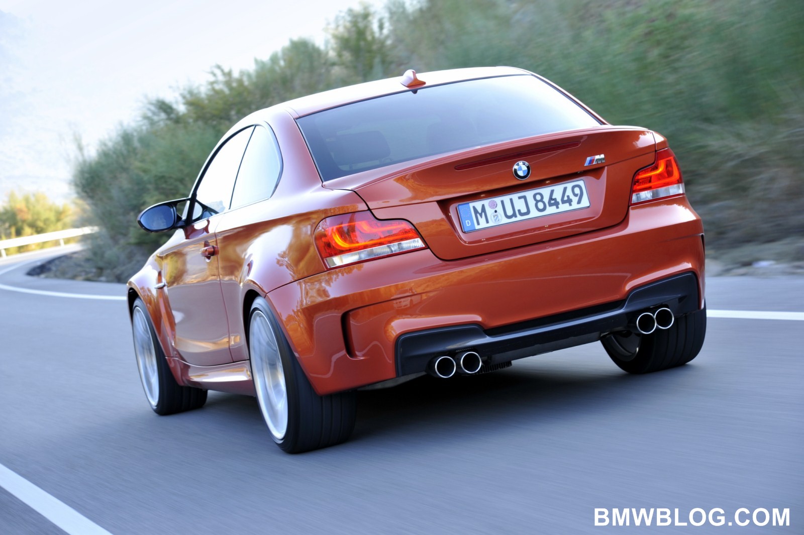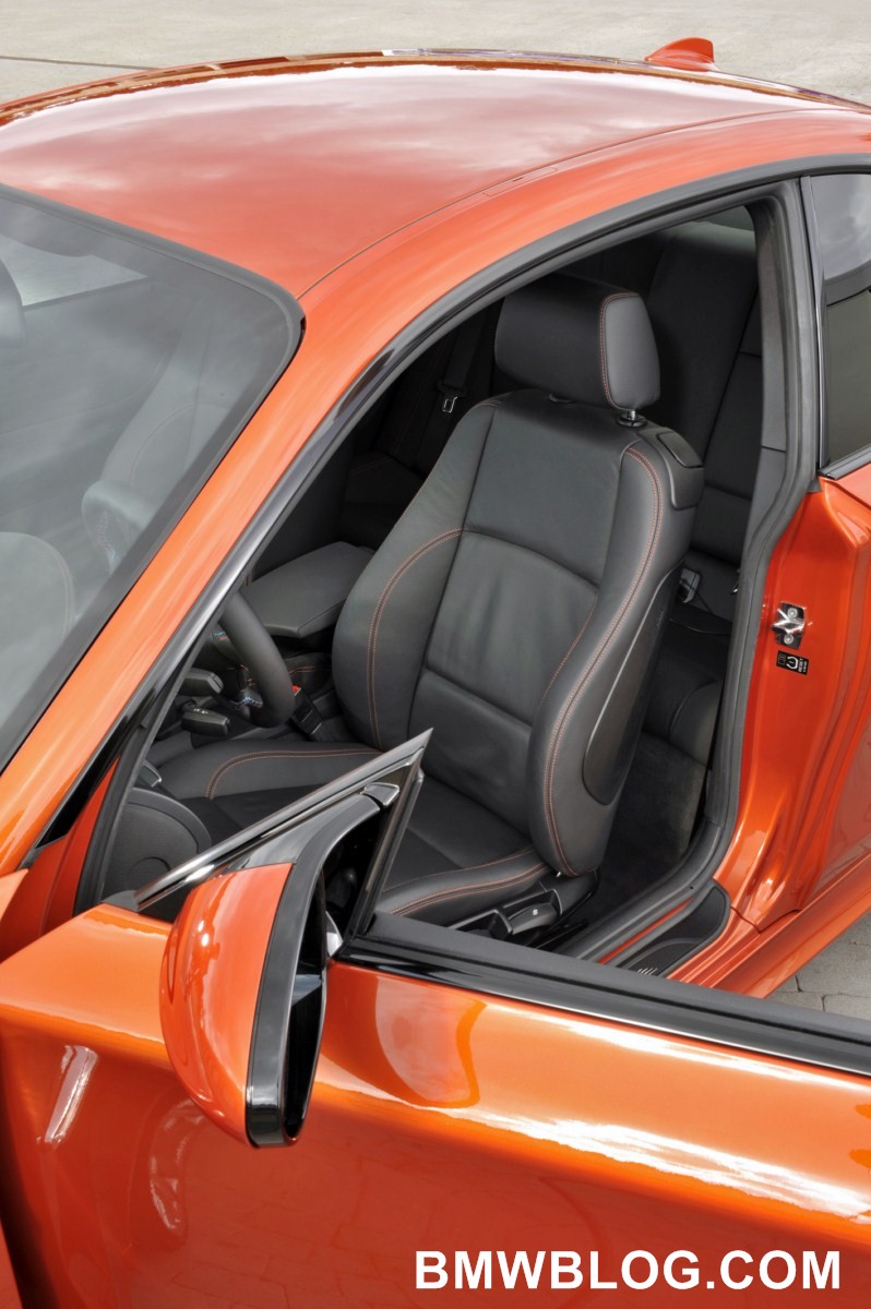 There are three exterior paint finishes to choose from for the BMW 1 Series M Coupe. In addition to Alpine White non-metallic and Black Sapphire Metallic, Valencia Orange Metallic is available exclusively for this compact high-performance sports car.