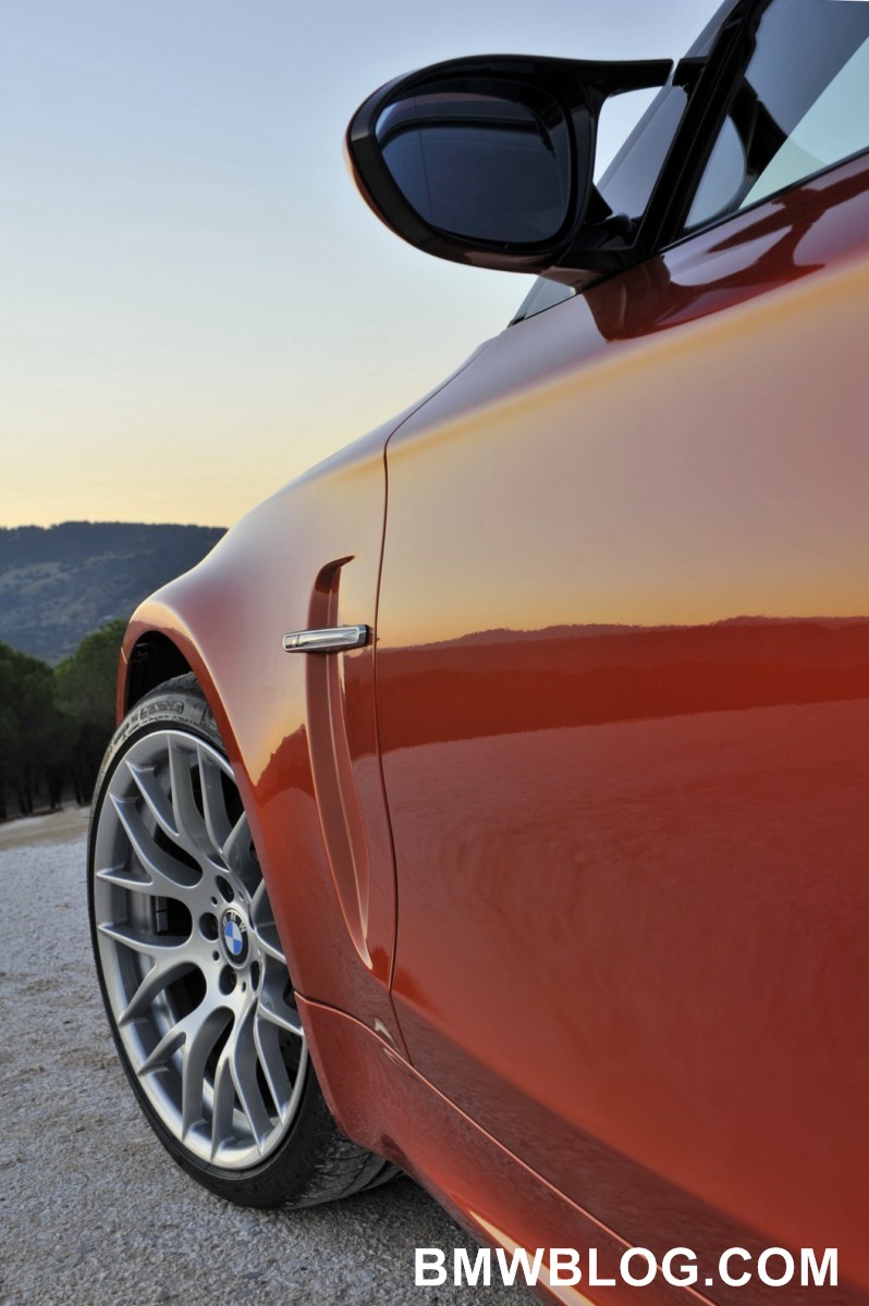 The new BMW 1 Series M Coupe has been developed for near-perfect balance and a large, square footprint. It is 71 inches (1803mm) wide – 4.8 inches (122mm) wider than its 1988 M3 ancestor – yet only 1.3 inches (33mm) longer at 172.4 inches (4379mm) long. The new 1 Series M Coupe weighs in at 1,495kg DIN (3,296 lbs, preliminary), and features a 104.7-inch (2659mm) wheelbase, three inches longer than the 1988 M3. Front and rear track widths are exactly the same on the 1 Series M Coupe at 60.7 inches (1542mm) each. Compared to the 2011 BMW 135i Coupe, the 1 Series M Coupe is 0.2 inches (5mm) longer, 2.1 inches (53mm) wider, 0.5 inches (13mm) taller, and rides on the same 104.7 inch (2659mm) wheelbase. It features a track 2.8 inches (71mm) wider up front and 1.8 inches (46mm) wider in the rear, and weighs 35kg DIN (77 lbs, preliminary) less.