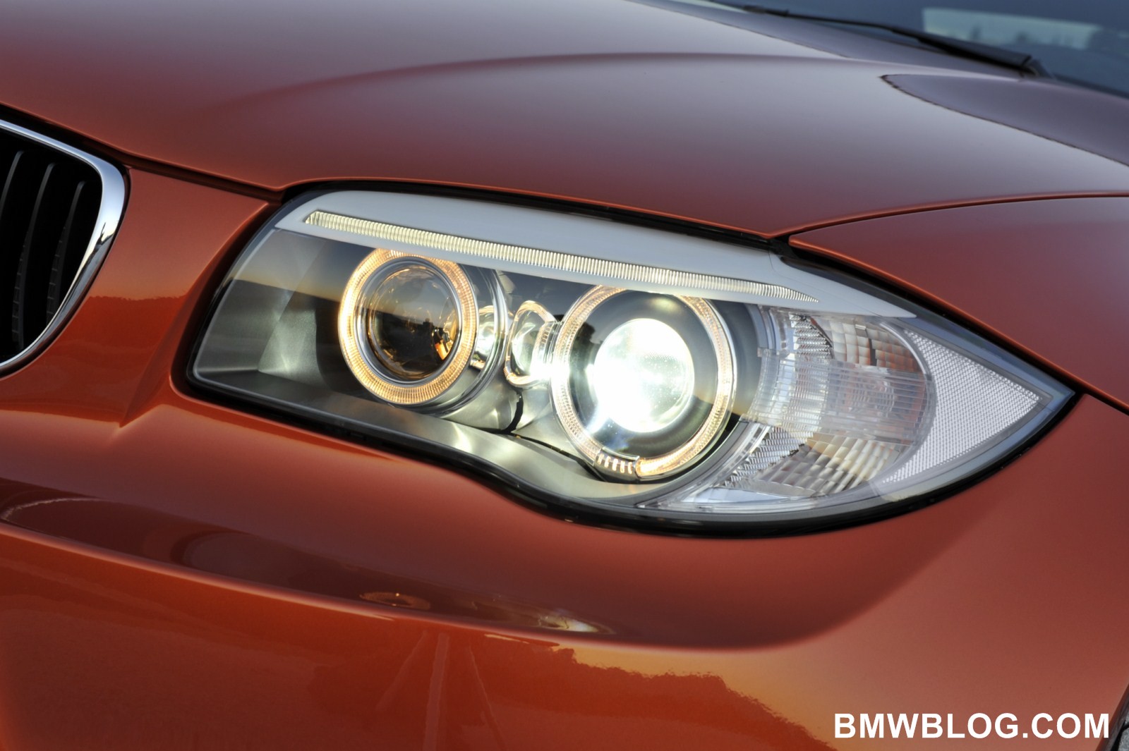 The BMW 1 Series M Coupe features standard Xenon Adaptive headlamps. The twin circular headlights are truncated in the upper section by an LED-fed “eyebrow.” This is what creates the focused look of the 1 Series M Coupe.