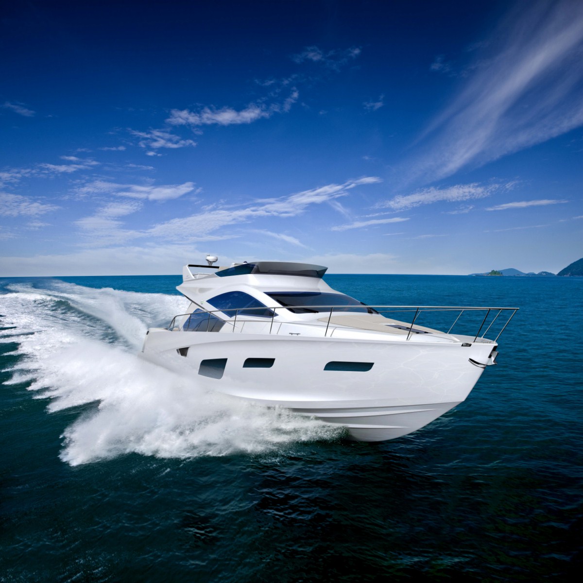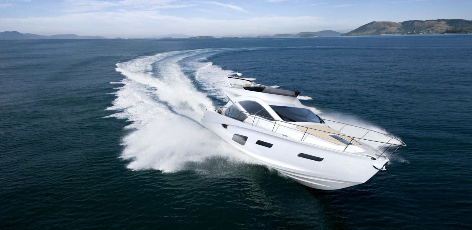 The internal areas of the Intermarine 55 were conceived from the theme “open horizons”, providing maximum openness and space. Inspired by modern architecture, the spaces are full of natural light and light reflexions, creating a warm and comfortable environment. The big windows in the salon, cabins and even in the bathrooms allow an open view to the sea. The salon door offers perfect integration with the stern area thanks to its wide opening via three door panels. Since Brazil’s climate allows for optimal time on deck, the design included open transitions for increased functionality.