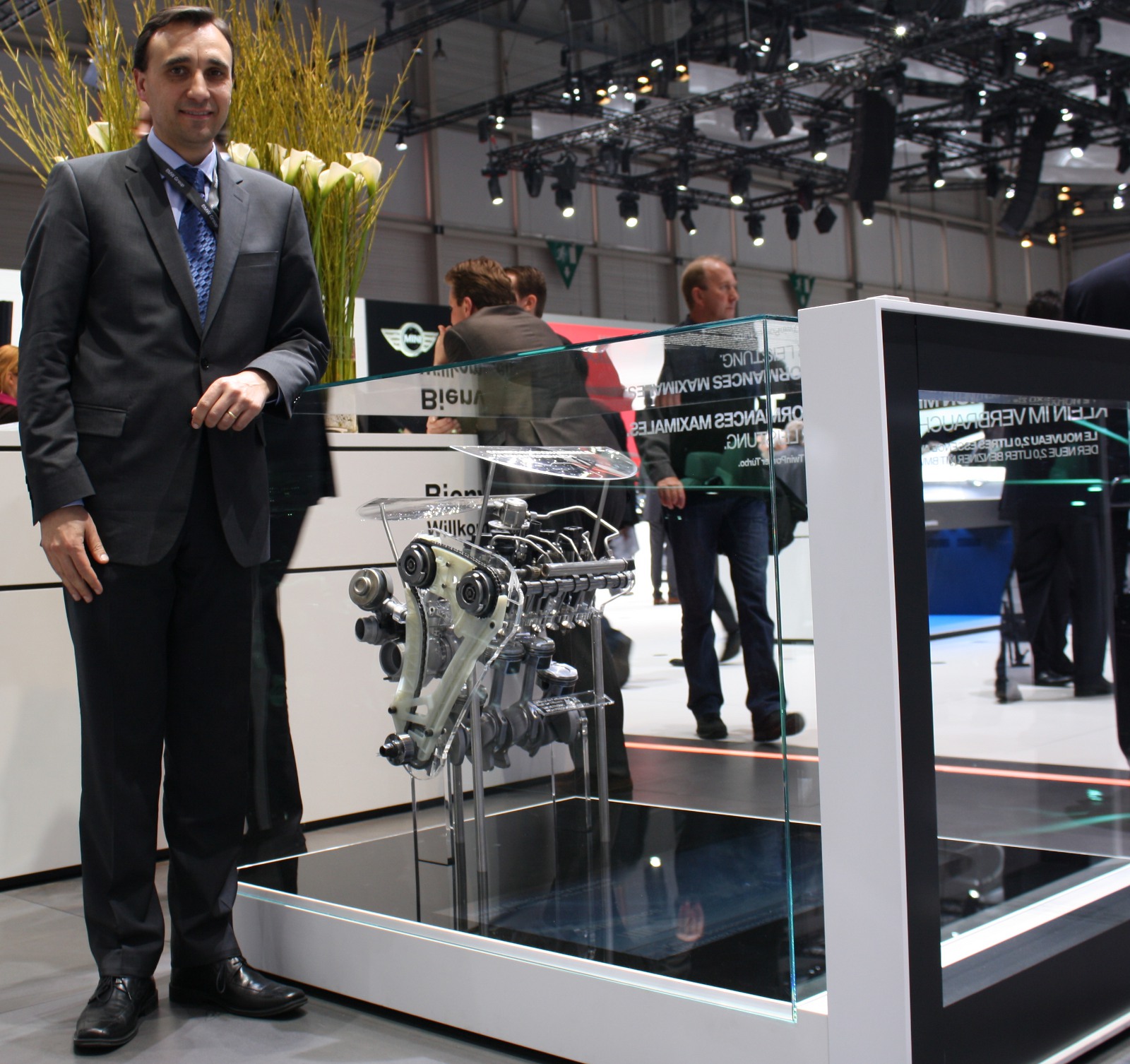 Dr. Lopez: The Valvetronic was first introduced in 2011 in a four cylinder engine. The Valvetronic has two functions here: one, to lower the fuel consumption, a function we already had in the four-cylinder naturally aspirated engine. Typically you work against the throttle, so you lose efficiency there. Basically what you do is completely open the throttle, but then you need a way to regulate the amount of air that goes into cylinder, so we introduce the Valvetronic so the valves detect the height. when they open fully you get the full mode, when they open a tiny bit, you’re in idling speed. The cylinders don’t works against the pressure difference that is build up by the throttle. It’s an efficiency measure that we had starting in 2001 and developed the system further over the years, and now in the turbo system what it is interesting is that it not only delivers an efficiency component, but a performance component as well. If you use a turbo engine in a system without Valvetronic you have to wait until the amount of air has gone from the throttle to the intake of the engine. With the Valvetronic you can regulate it very close to the engine, so you have a better response.
