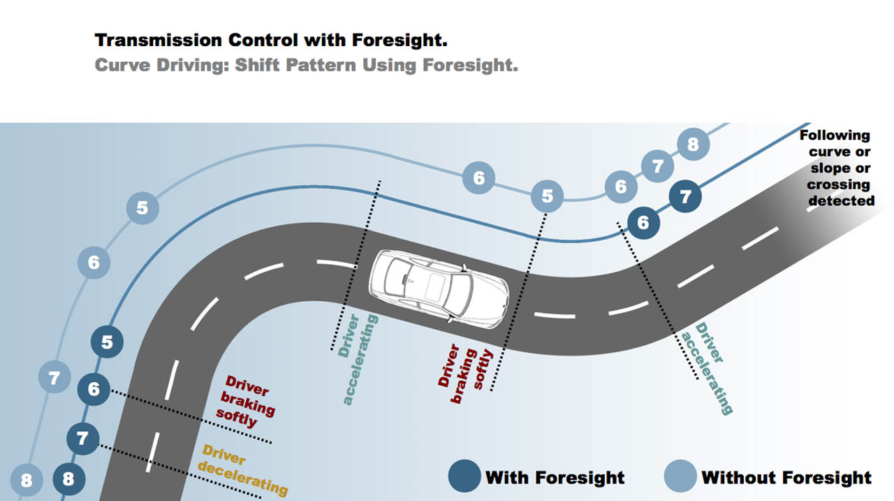 As a result of further development there is now the possibility to adapt gearshift commands given by the transmission control system to each driving situation even more flexibly and at the same time more accurately. The anticipatory transmission control system currently in the advance development stage utilises, in addition to the driver’s intention, further information to take into consideration road surface conditions, road topology as well as the traffic situation when selecting the ideal gear. For this purpose, the transmission control system is linked to both the DSC (Dynamics Stability Control) function as well as the navigation system in the initial stage. In the configuration levels that follow, a link-up with the cameras utilised for the driver assistance systems or radar and additional sensors respectively is under consideration.