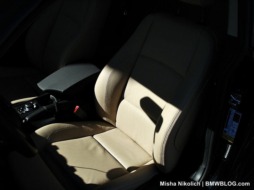 The light burl wood trim shows this car can be dressed up or down like a nice pair of loafers – it adds a touch of class and elegance to the entry-level Bimmer. Fit and finish is top notch and materials are high quality as you would expect from BMW. All the controls are uncluttered, and easy to understand and reach. The iDrive navigation system is easy to learn and has bright crisp image quality. It’s situated higher up on the dash, close to the windshield, helping keep your eyes on the road. The snap-in cupholder has come in handy and holds nicely the stainless steel BMW coffee thermos the dealer gave me as a gift.
