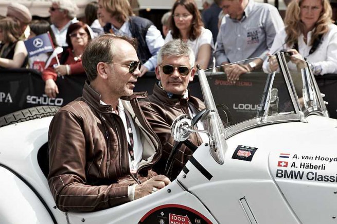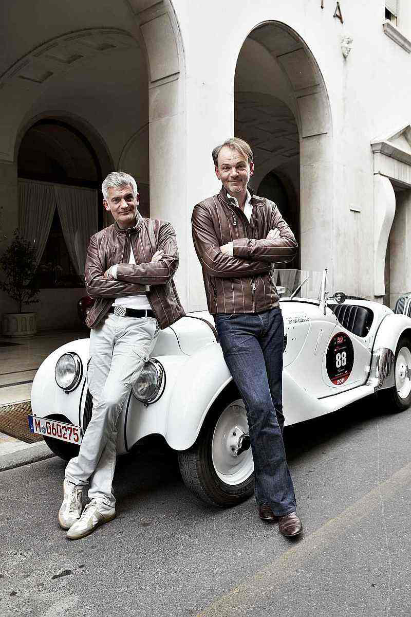 BMW selected a trio of design greats to compete in this year’s Mille Miglia. Head of BMW Group Design Adrian van Hooydonk and Swiss industrial designer Alfredo Häberli took part in the world’s most renowned classic car rally in a white BMW 328, which celebrates its 75th anniversary this year. One of almost 400 participating teams, the duo set out from Brescia in northern Italy on 12 May. Following staging posts in Bologna and Rome, the team cleared the finish ramp in Brescia on 15 May.