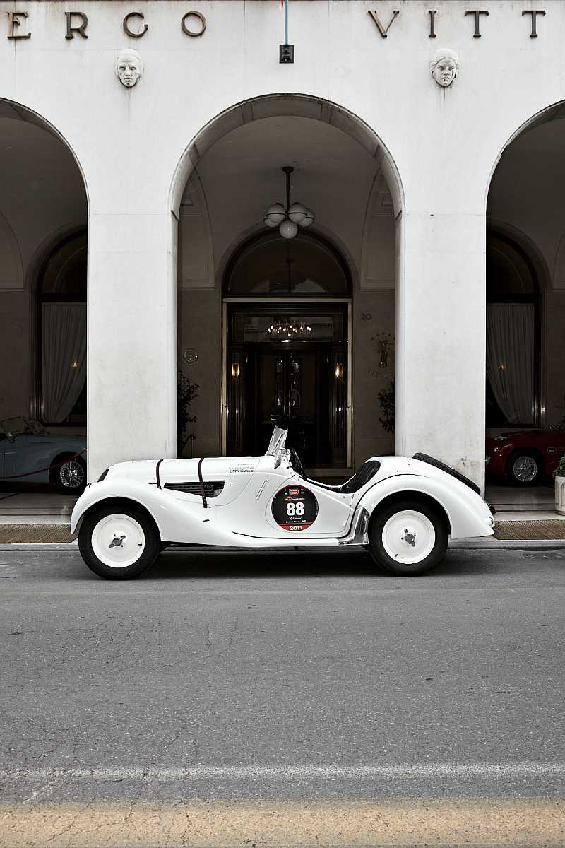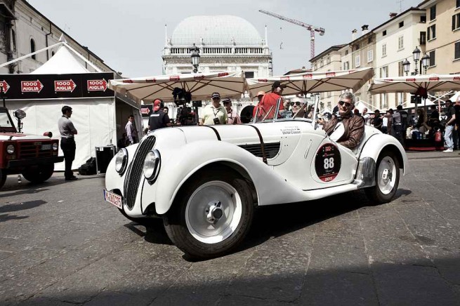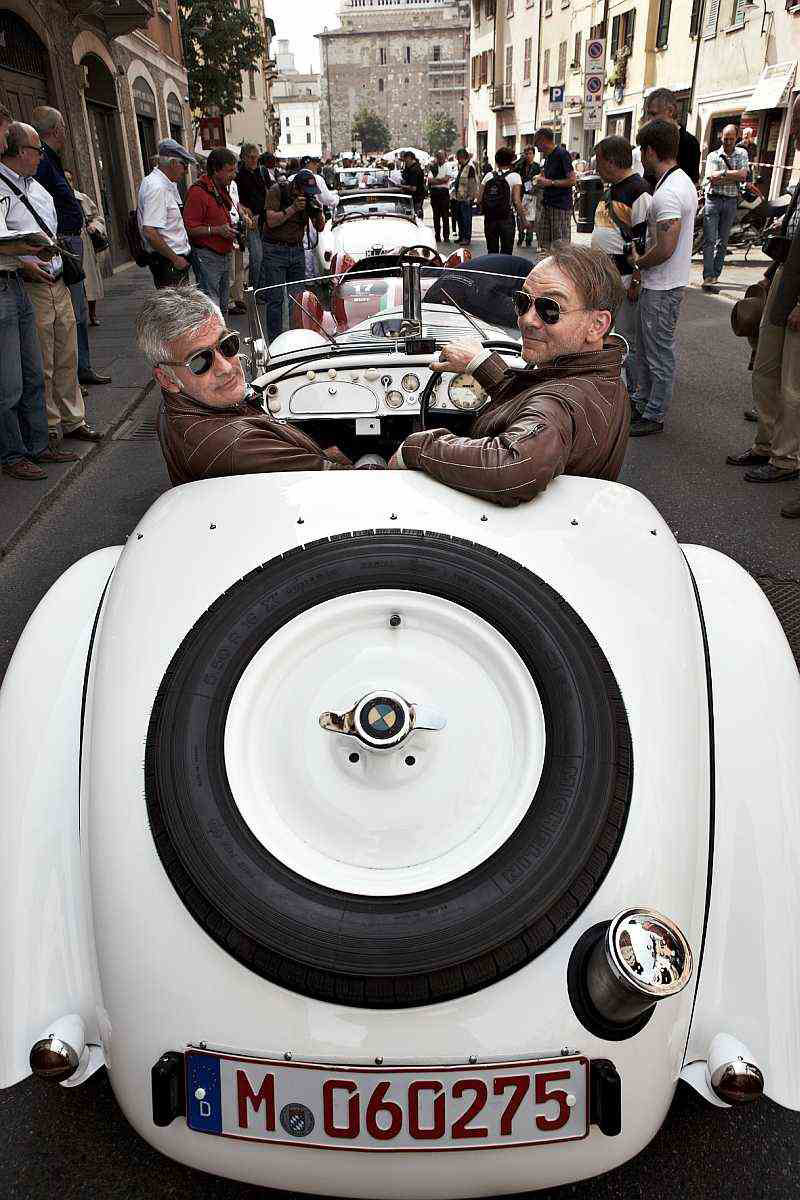 The Mille Miglia classic rally covers a distance of 1,000 miles (“mille miglia” in Italian) – or around 1,600 km – from Brescia to Rome and back. The original road race, first held in 1927, was geared to speed until its final staging in 1957. Following a long interval it was revived in 1977 on an annual basis, featuring historic automobiles and focusing on disciplines such as regularity and reliability. Every year hundreds of thousands of spectators follow this historic parade with its participants from around the globe. In 2011 the first two day stages covered a route from Brescia via Ferrara and Bologna to Castel Sant’Angelo in Rome. The third day saw the classic cars return to the starting point of Brescia via Siena and Florence.