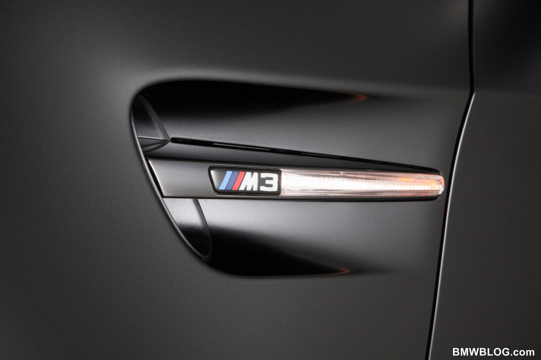 The special BMW Individual matte paintwork on the Frozen Black Edition M3 adds a rare metallic luster to the vehicle. Compared to conventional exterior colors with gloss finish, the sculpture-like character of Frozen Black paint highlights the athletic contours of the M3. To achieve this luster, a special BMW-developed silk matte clear coat is applied over the Black Metallic base coat. BMW Individual’s Frozen paints meet or exceed all BMW standards for durability and longevity, and feature a full factory warranty. Special care guidelines are provided to customers and authorized BMW centers to prevent the finish from becoming glossy.