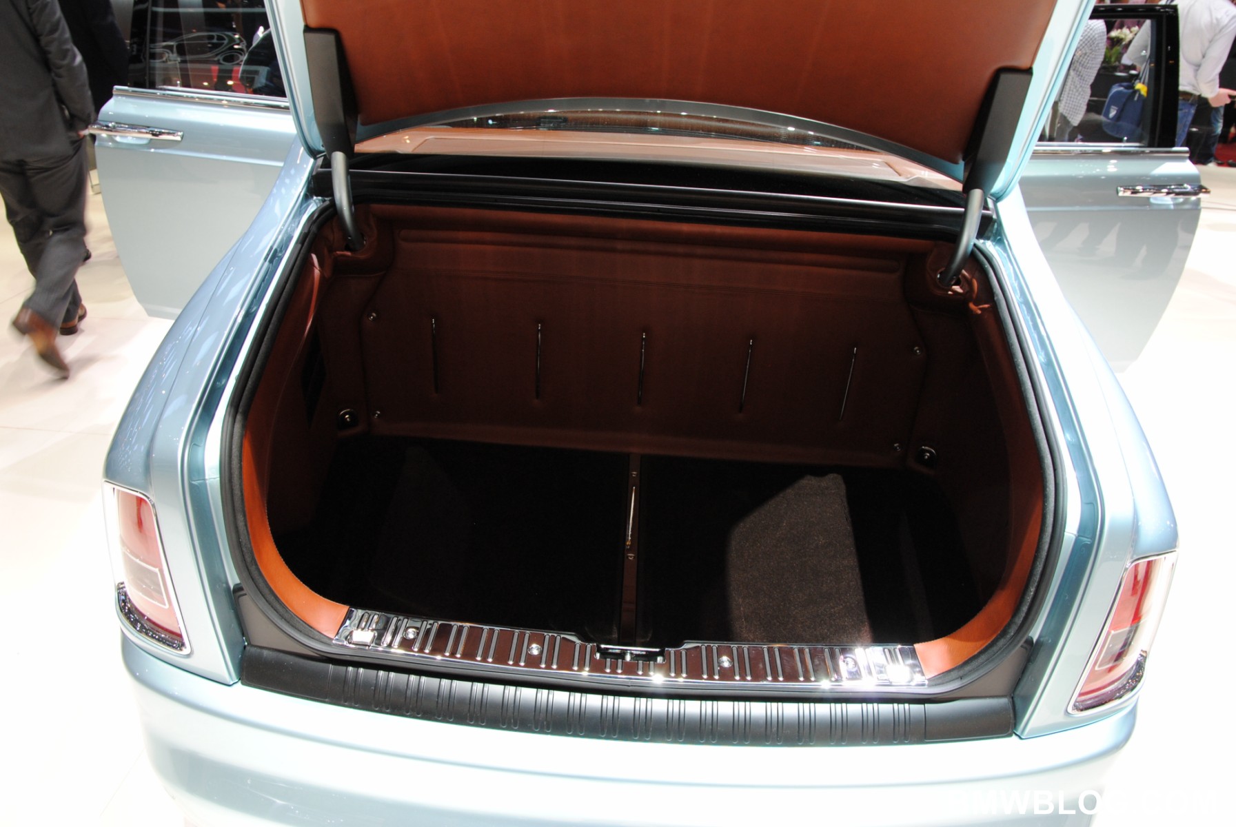 In the Phantom 102EX, engineers replaced the 6.75-liter V-12 with a massive 71-kilowatt-hour lithium-ion battery housed within the aluminum spaceframe. Rolls-Royce is using large-form NCM pouch cells, or lithium-nickel-cobalt-manganese-oxide to be exact. Due to its experimental nature, the 96 cells are separated into 5 modules (38-, 36-, 10-, 8-, and 4-cell units) and arranged in such a way that the overall battery takes on the shape of an engine and transmission. The battery weighs 1,411 pounds.