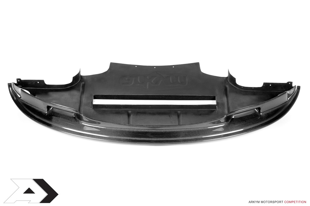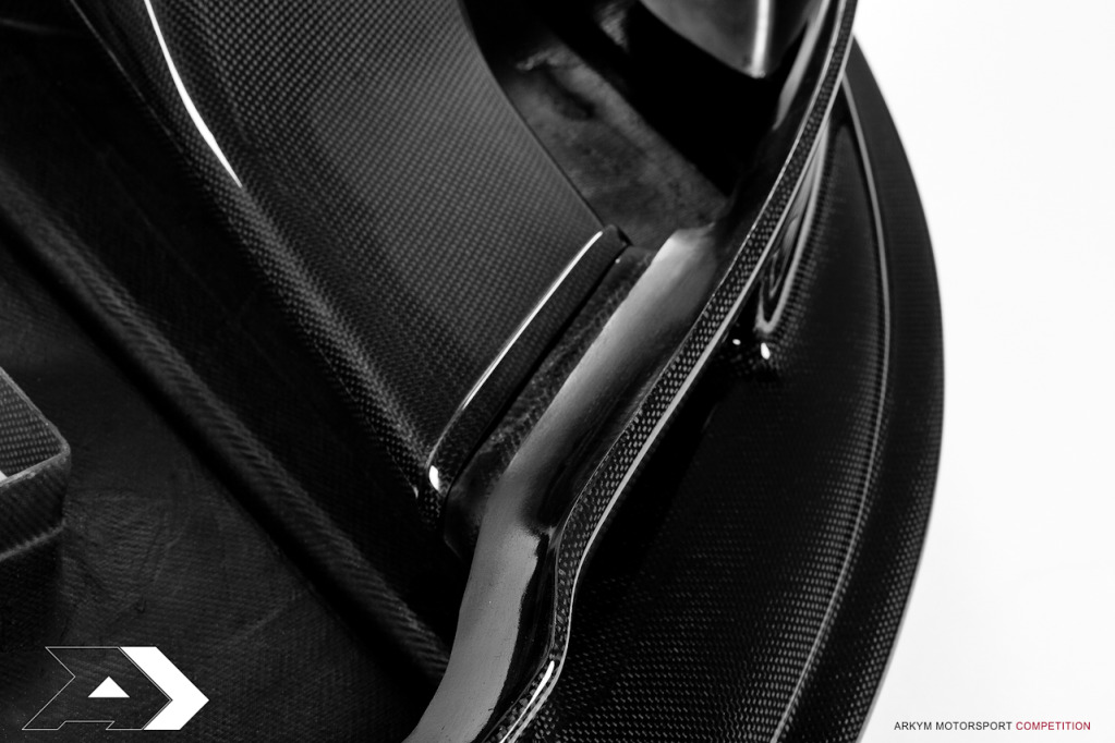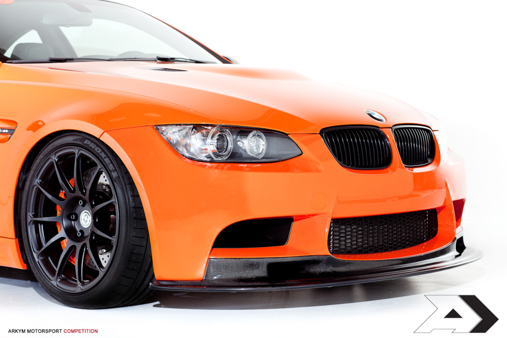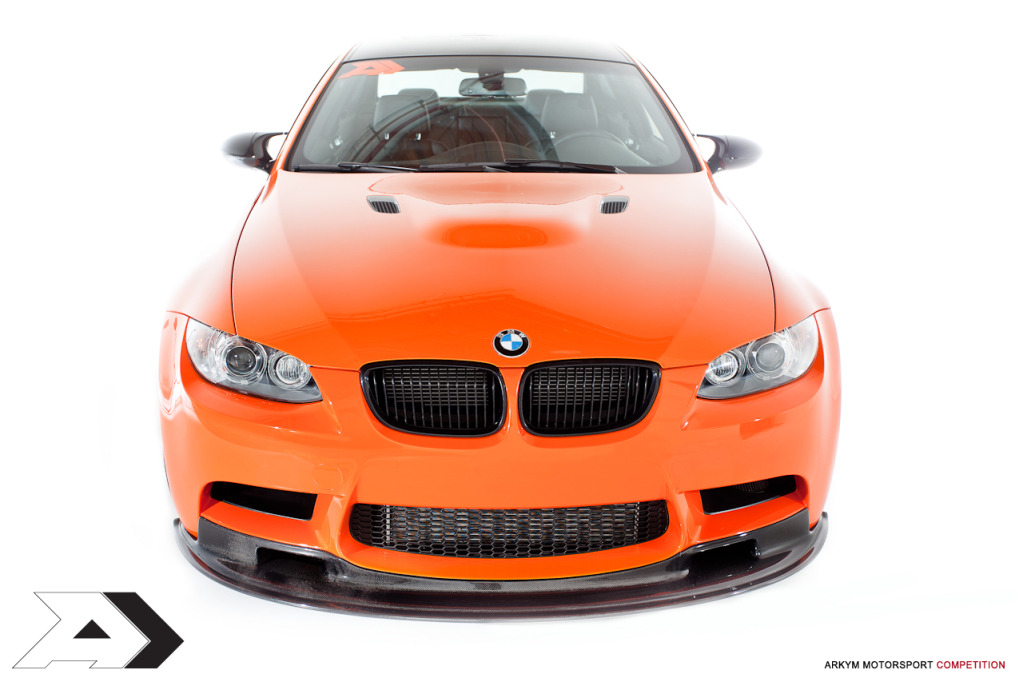 The latest upgrade to the already aggressive M3 bodystyle makes no exception. ARKYM introduces the Motorsport Competition Front Spoiler Package, a combination of form and function, suitable for street and race track driving. Made out of carbon fiber, the front-end kit integrates stability Carbon Kewlar strakes. Detachable brake ducts come standard along with an extended one-inch, downforce inducing, aggressive plane.