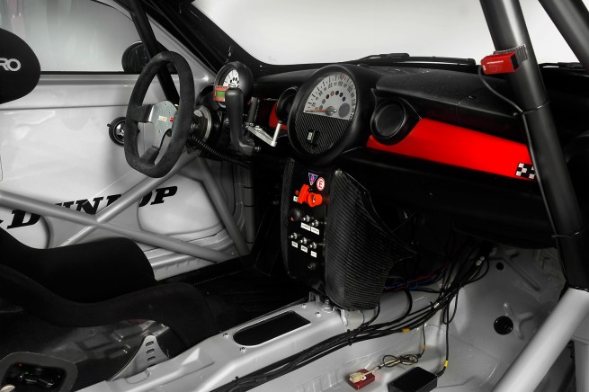 Safety – MINI Challenge braking system with Race ABS, race-tuned DSC, welded-in roll cage, six-point safety belt, racing seat (Recaro) with HANS system, main switch concept with electronically controlled fire extinguishing equipment