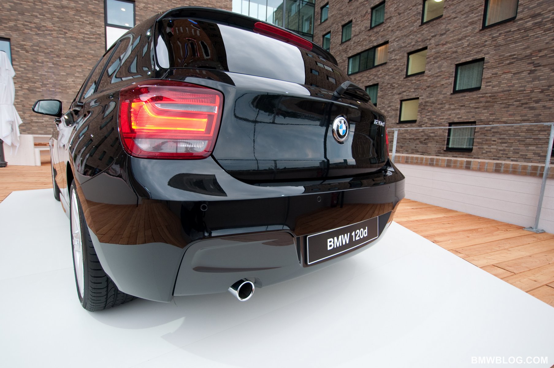 Today we bring you candid photos of BMW’s new F20 1 series 5 door hatchback. On display at the global launch of BMW’s latest compact car, the 1 series M sport package was shown in Ebony Black. Changes to the exterior include both aerodynamic and stylistic improvements.