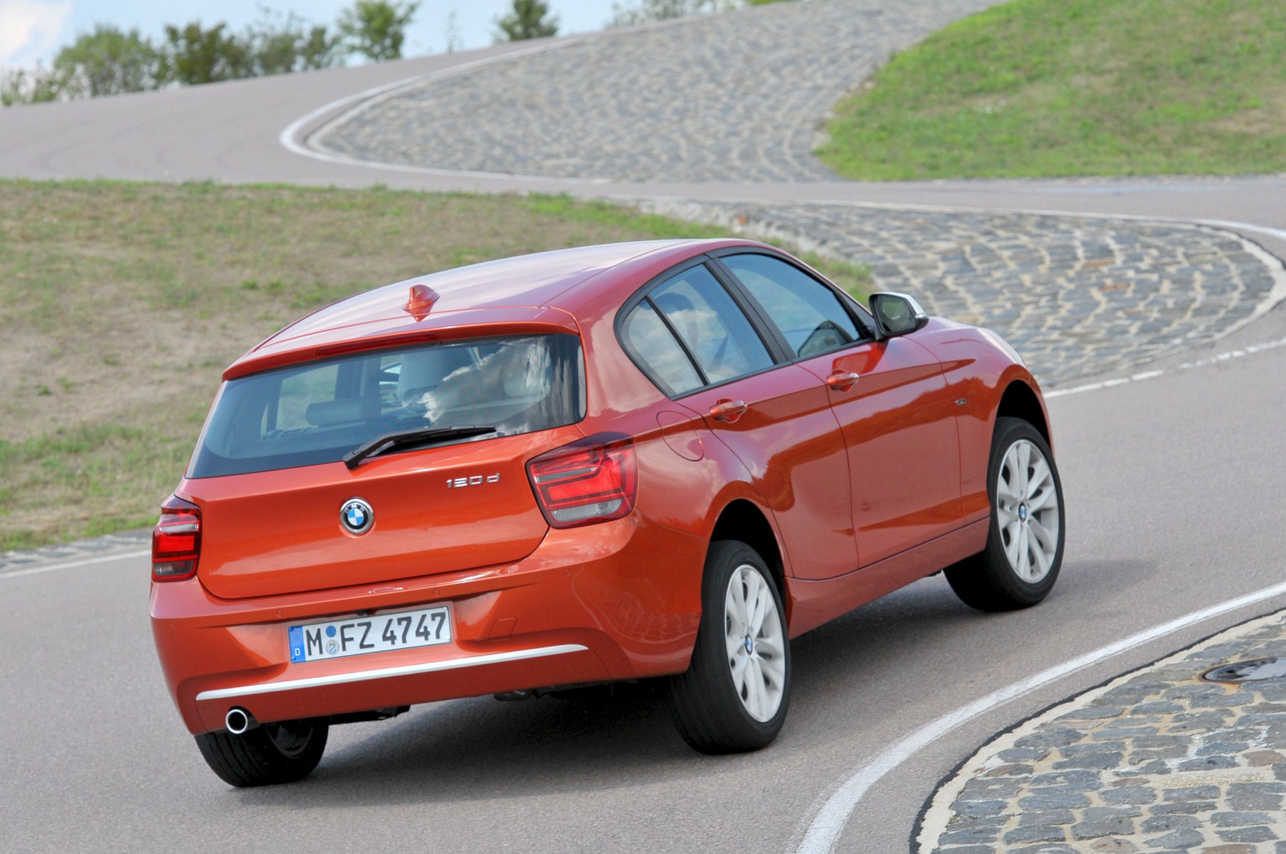 The new small size premium BMW goes on sale late this year and will be available for the European market only. At launch time, the F20 1er is offered in a variety of exterior colors: Black Sapphire, Alpine White, Crimson Red, Mineral Gray, Midnight Blue, Deep Sea blue, Glacier Silver, Mineral White, Liquid Blue, Valencia Orange. In the fall, the M Sport package becomes available and among the usual exterior and interior upgrades, will also include the historical Estoril Blue paint.