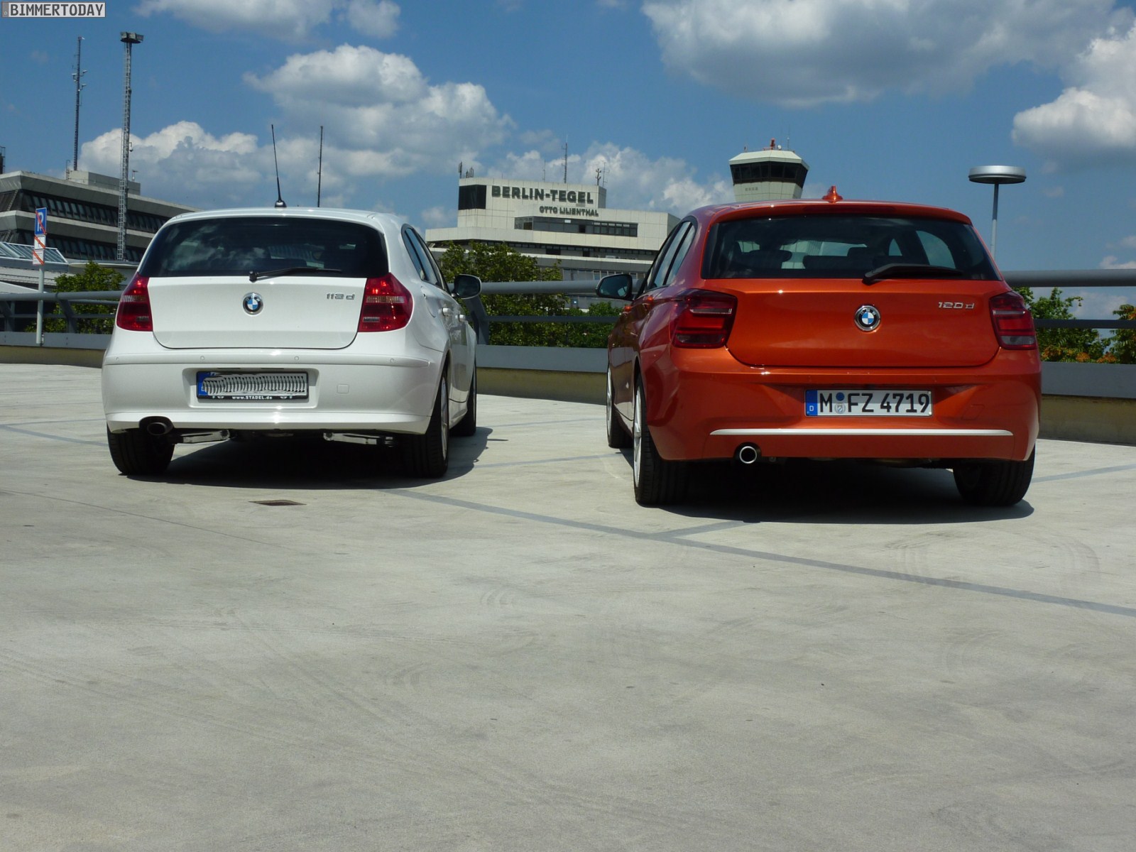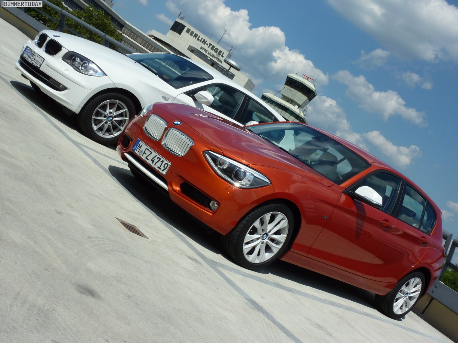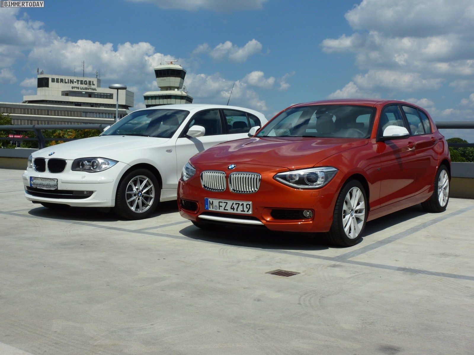 At the Berlin press launch of the new 1er, we had the opportunity to observe the two vehicles from up-close and capture them side-by-side. Styling wise, the F20 1 Series follows the design language initiated by BMW back in 2009 when the new 7 Series came to market. The car features a bold front that aims to stand out with what we believe are a pair of oversized headlights surrounding a flat and smaller than expected kidney grille. The hood sports the creases seen on all the new BMWs and facelifted models.