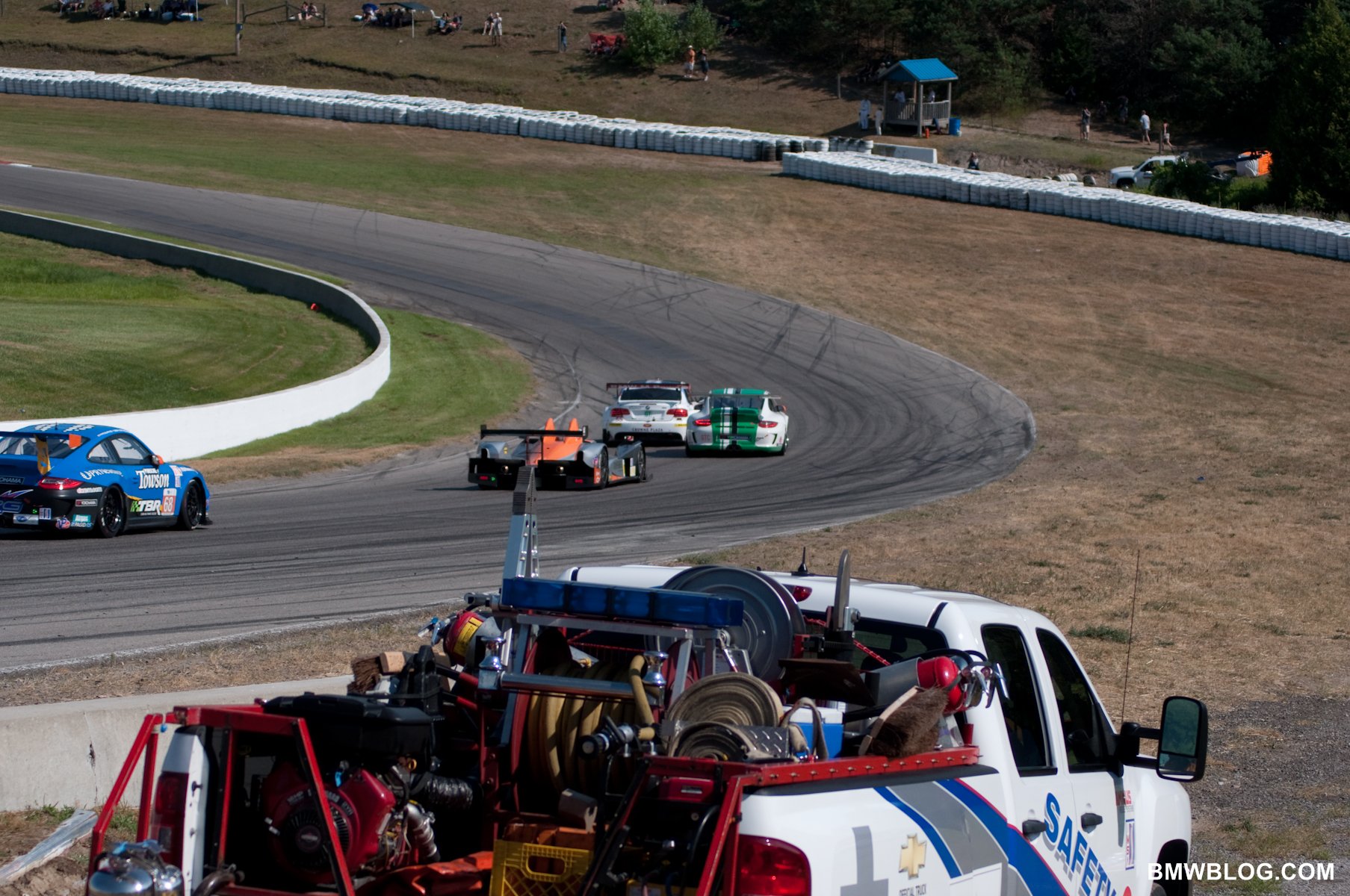 From P1 and P2 on the grid however, the race somewhat unraveled as a competitor evidently jumped the start – and continued without penalty – and the BMW racers faced drive-through penalties for touching a Porsche in the pits. For a full race review, see our 2011 Mosport ALMS review article.