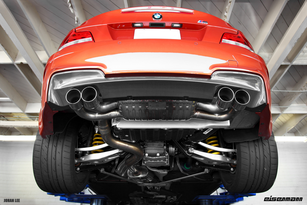 We are fortunate enough to be friends with proud 1M owner Larry, or biglare on the 1addicts forum. His easy going personality, honest feedback, and real enthusiasm for BMW cars made him a perfect choice to try Eisenmann’s new 1M exhaust, and so shortly after landing in our warehouse, the 1M prototype box made it’s way to San Diego, the exhaust system made it’s way out of the box and finally Eisenmann’s 83mm tips made their way under the 1M’s beautiful rear valence.