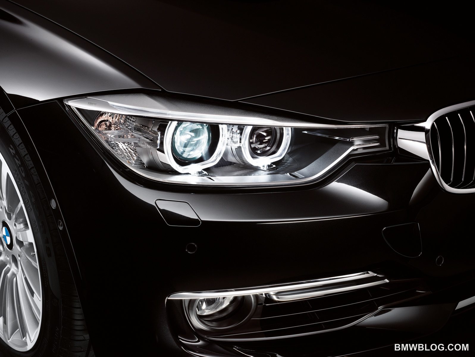 The wedge shape of the new 3 Series’ silhouette and its wider track underline the sporting appearance of the new BMW. By clearly accentuating the width of the car, the multi-faceted surfaces of the expressive front fascia give the BMW 3 Series a more athletic face than ever. A wide, squat interpretation of the upright, slightly forward-slanting BMW kidney grille emphasizes the assured presence of the new BMW 3 Series. LED accent lights positioned like eyebrows above the striking twin headlights with corona rings (if xenon headlights are specified) lend an extra intensity to the classic BMW focused look. Clearly defined headlight surrounds now extend up to the frame of the kidney grille, merging the headlights and grille of the new BMW 3 Series Sedan into a single stylistic unit and adding further emphasis to the car’s broad-set stance. The BMW 3 Series replaces the central air intake of its predecessor with two larger intakes, which are positioned underneath the headlights to the outer edges of the front fascia and add extra depth to the car’s sporty styling. On the far left and right of the main ducts are small vertical intakes which help create the “Air Curtain”. This new technology improves air flow around the front wheels, enhancing aerodynamic efficiency and reducing fuel consumption at higher speeds.