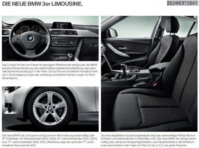 But for the first time, we have a chance to see the F30 3 Series in standard form as well. Even though the catalog doesn’t specify pricing for the three lines, we expect them to carry a premium price of around 2,000 euros, similar to the new 1 Series.