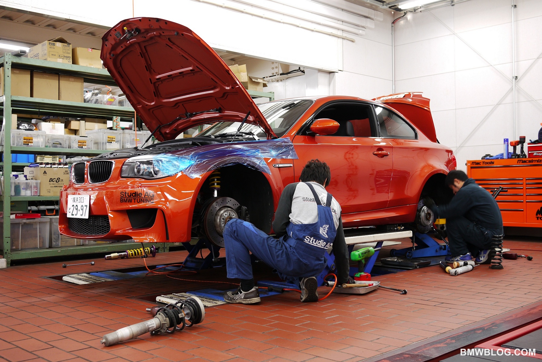 Respectable and renown Japanese tuner Studie begins work on their new BMW 1M project. For starters, the tuning shop changed the standard suspension by replacing it with the opular KW Club Sport suspension kit.
