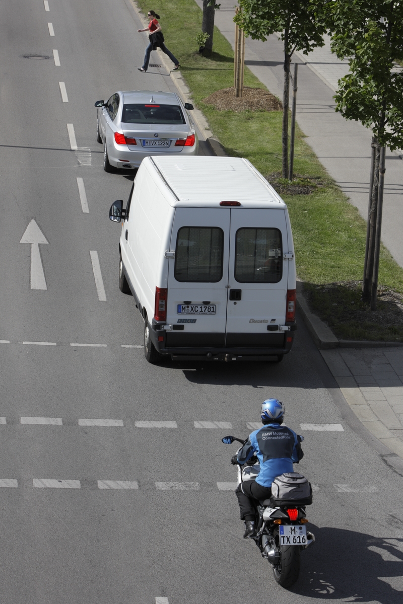 The key to intelligent driving, which is synonymous with energy-efficient and safe driving, is forward thinking. To help drivers plan ahead, vehicles from the BMW Group are already fitted with a large number of sensors designed to improve safety, comfort and efficiency. Often, however, these sensors have only a limited predictive capability or “horizon”. “Car-to-x” communication extends this horizon significantly, and will in future allow drivers to “see” long distances ahead, into areas currently hidden from view, and even around not just one but many corners.