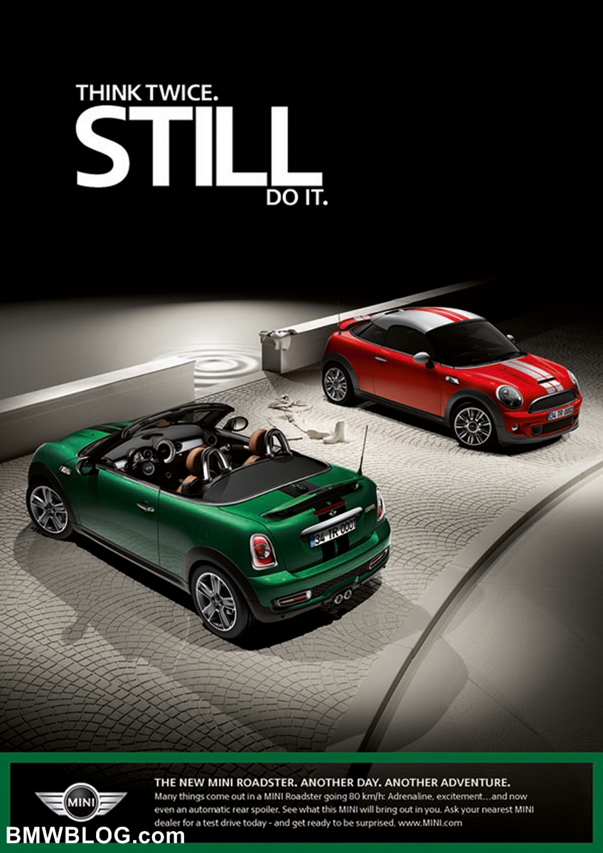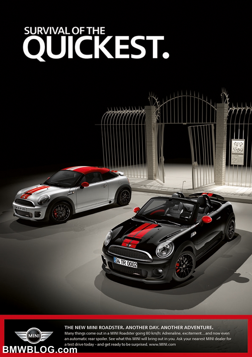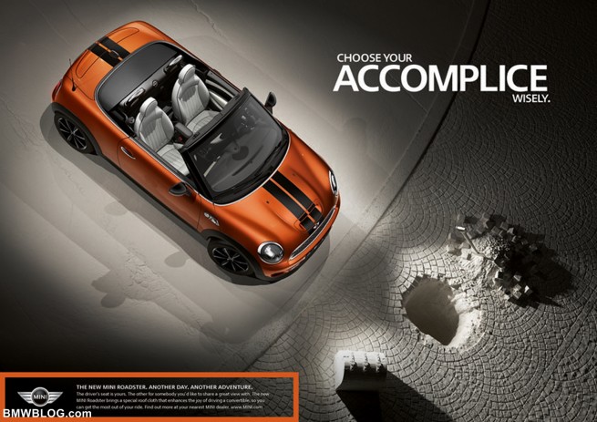 The print campaign shows the youngest member of the MINI family alone or with its accomplice, the MINI Coupé. Amusing and innovative slogans round off the print campaign.
