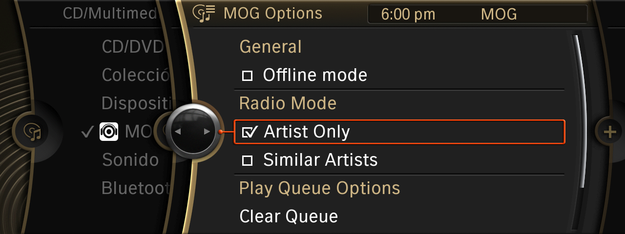 MOG radio: Only MOG offers patent-pending “MOG Mobius” music discovery engine, which enables users to switch between true “artist only” radio or a full mix of similar artists.