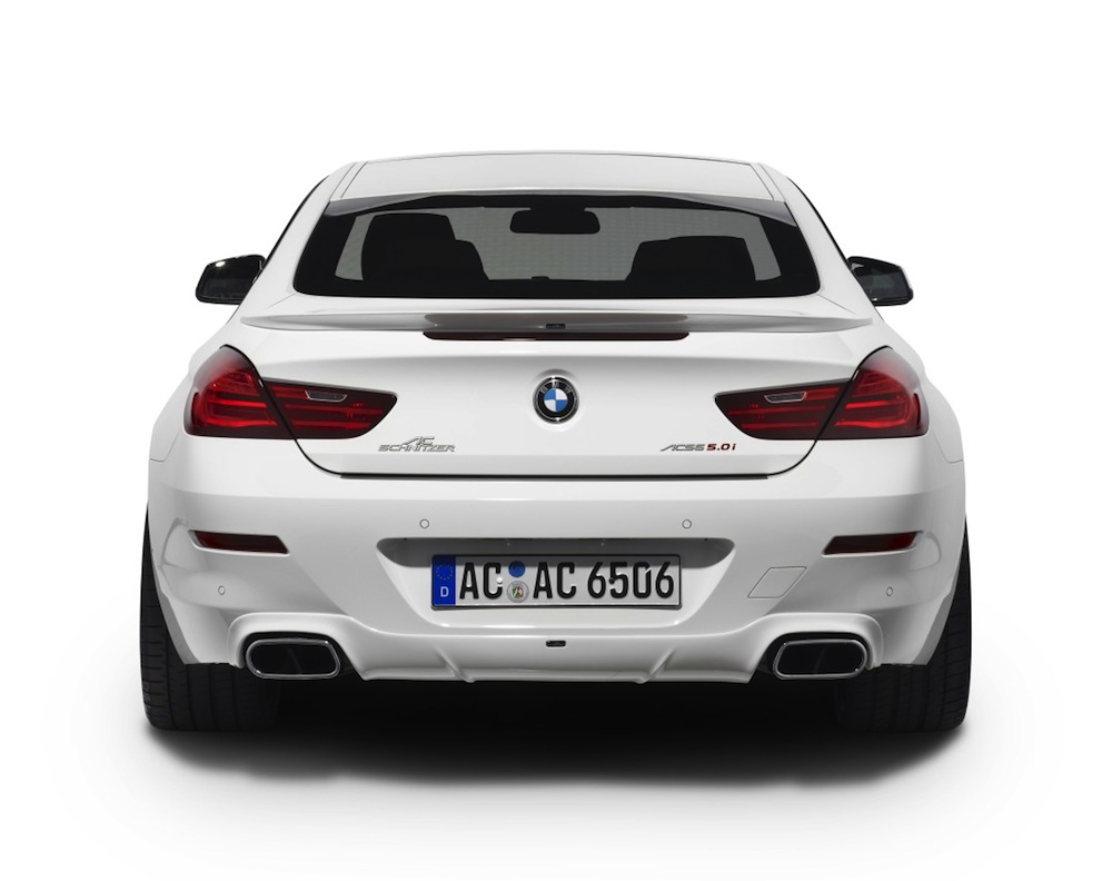 The pimped out 6er Coupe features a new aero kit with revised front air dams, front bumper lip spoiler, chrome grille integrated in the bumper, rear apron and rear spoiler, as well a new exhaust system with chrome tailpipes.