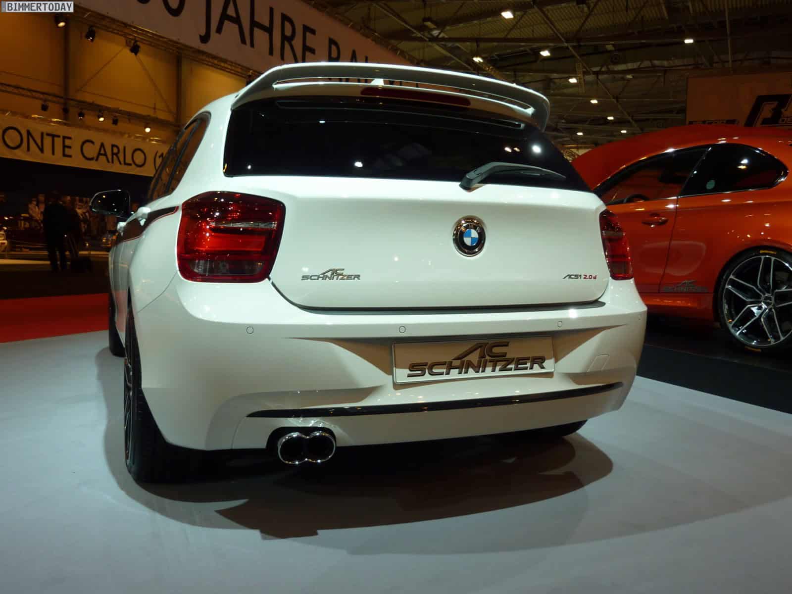 Along with the BMW 6 Series Coupe, AC Schnitzer brings their tuned up 1 Series to the 2011 Essen Motor Show. The ACS1 model was unveiled earlier this week and showcases the first step in their tuning program for the popular hatchback. At the front, the 1 Series features a sportier look thanks to the redesigned front spoiler, a rear roof spoiler, a racing tailpipe trim and alloy wheels in 18 or 19 inches. For a more sporty driving performance, AC Schnitzer offers an optional spring kit. The AC Schnitzer performance upgrades take the standard 118d from 143 to 171 horsepower, and the 120d from 184 to 210 horsepower.