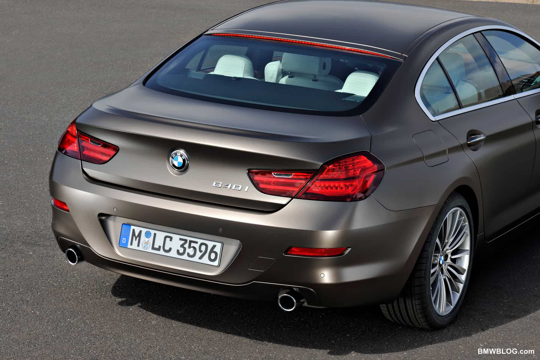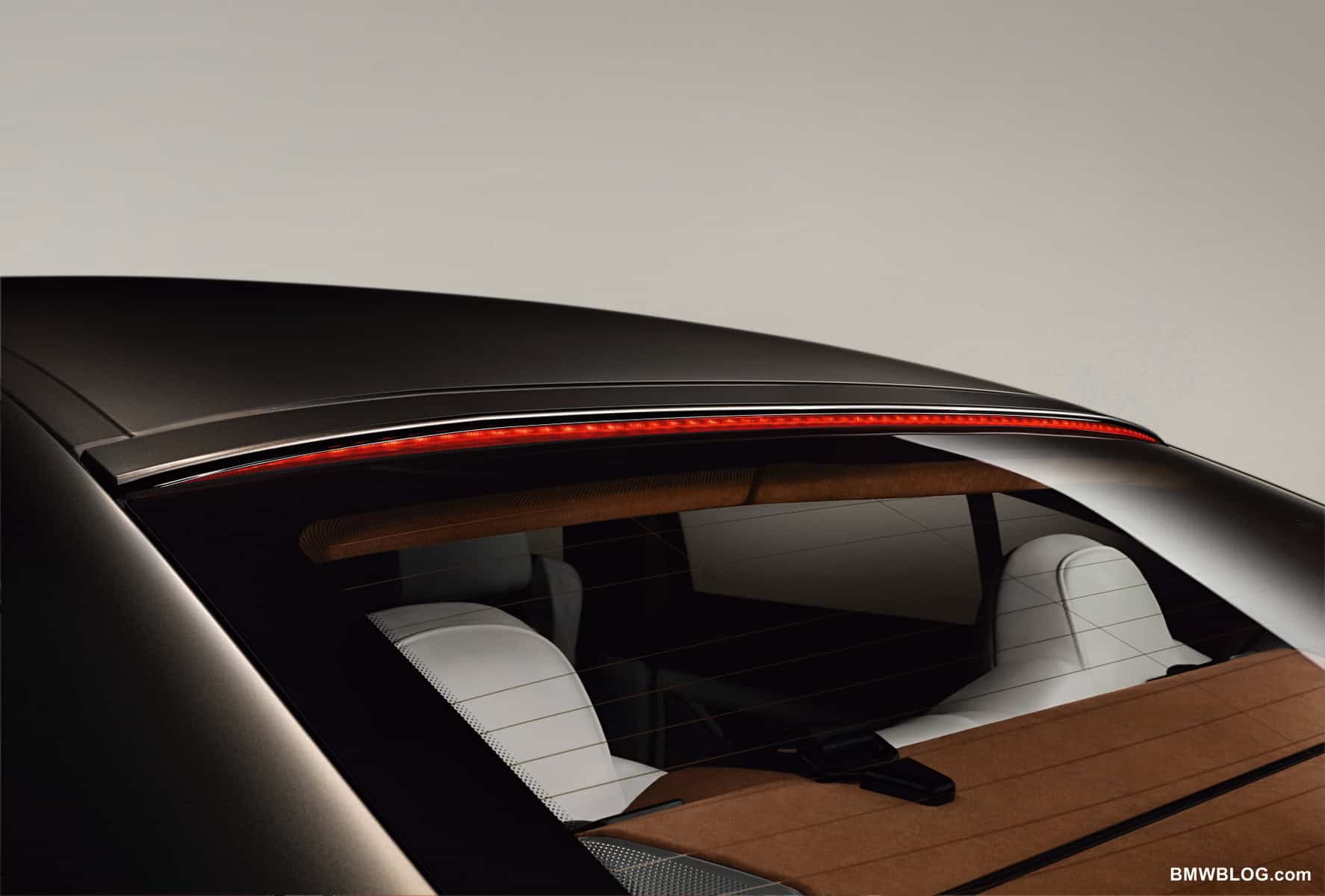 The two-part, L-shaped rear lights share the contours of the car’s BMW 6 Series siblings and each use a pair of LED light strips to generate the distinctive night-time look of a BMW. The third brake light is integrated into the roof and stretches the full length of the rear window.