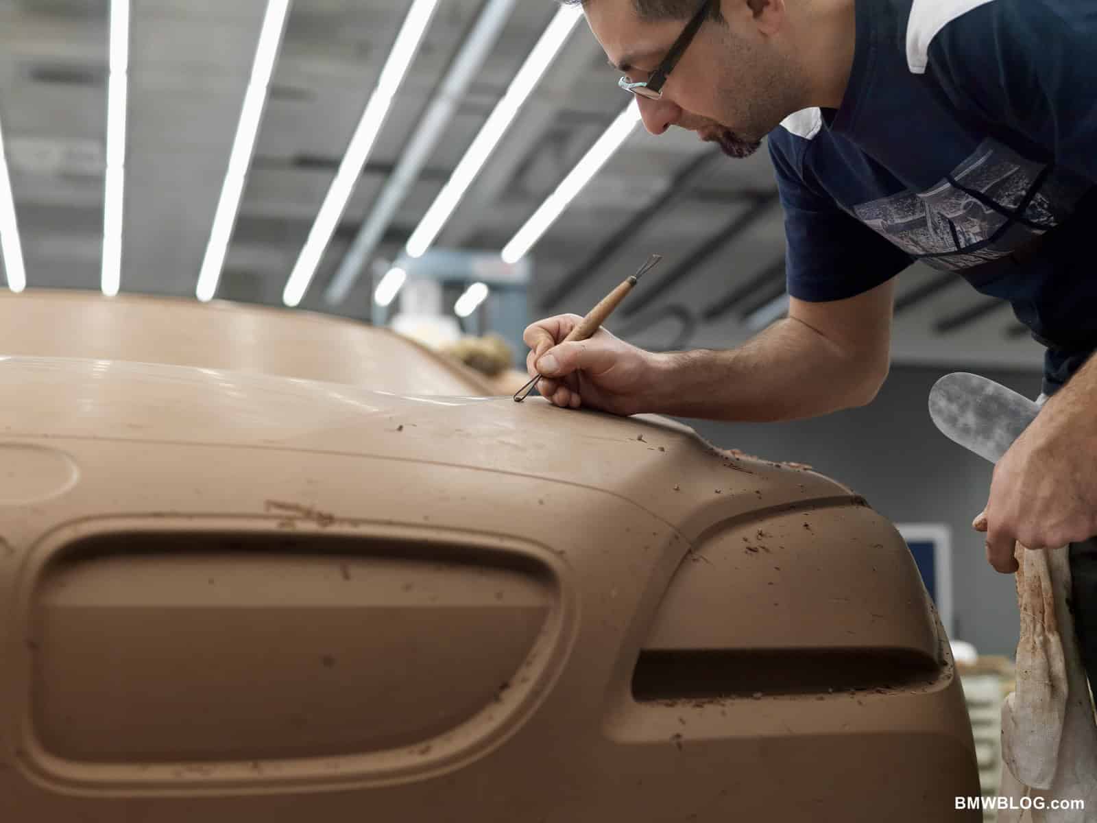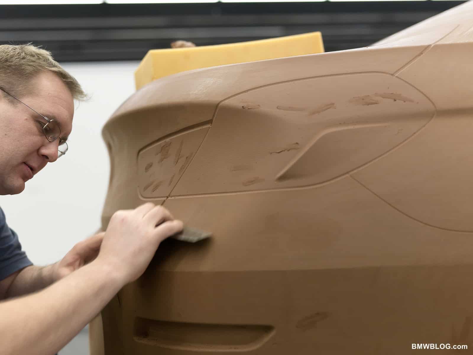 The expressive front end is dominated by the large and slightly forward-slanting BMW kidney grille. The grille emphasizes the car’s sporting pedigree with a broad, flat design, and creates a visual connection with the engine nestling behind. The kidney grille slats, angled slightly towards the top, lend additional emphasis to the front end’s “shark nose” character. The contour lines of the hood converge towards the kidney grille, forming a V-shape which is continued by the contours of the headlights, kidney and wide air intake to give a road-focused look.