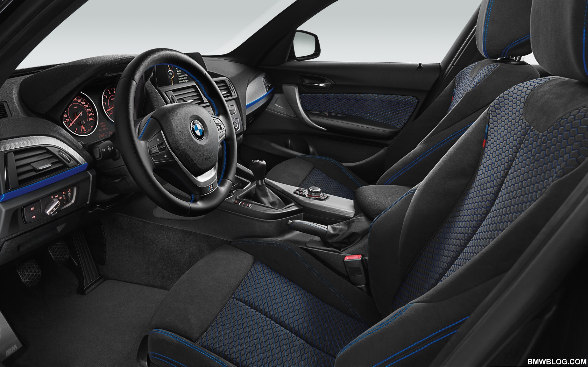 On the inside, sports seats, the M leather steering wheel (including multifunction), stainless steel pedals and the M footrest in aluminium reflect the exclusivity of the edition model. The M gearshift lever and handbrake handle including gaiter are finished in embossed soft nappa leather. The equipment features of the Edition Sport are rounded off with seat covers and door trim in the fabric/Sensatec combination Flashpoint Black (alternative: optional Boston leather trim in black) with contrast stitching in blue, interior strips in aluminium glacier silver and matching floor mats with blue welt.