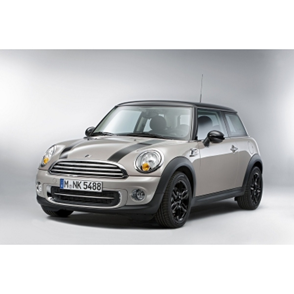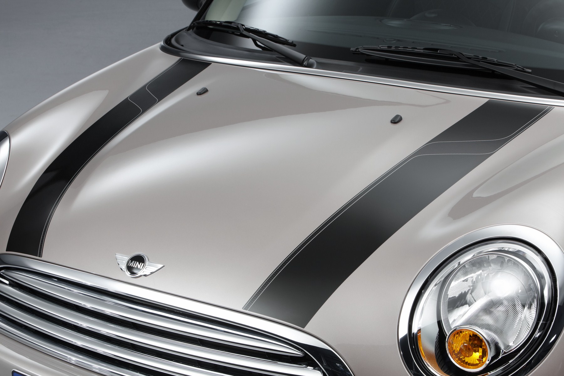 New exterior and interior design details developed exclusively for the MINI Baker Street mark out this special-edition model. The Rooftop Grey metallic exterior paint shade combines with special bonnet stripes whose basic colour black is given extra character by a subtle V-shape design. 16-inch 6-Star twin-spoke light-alloy wheels painted in high-gloss black along with matching black exterior mirror caps present an attractive contrast to the bold, contemporary appearance of the new exterior paintwork.