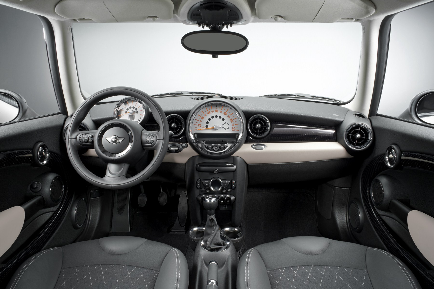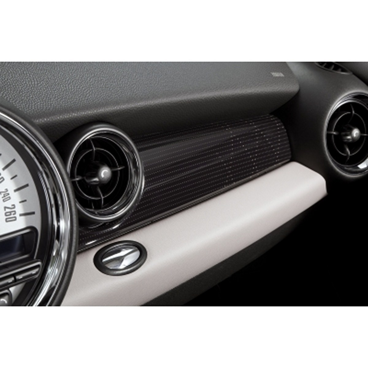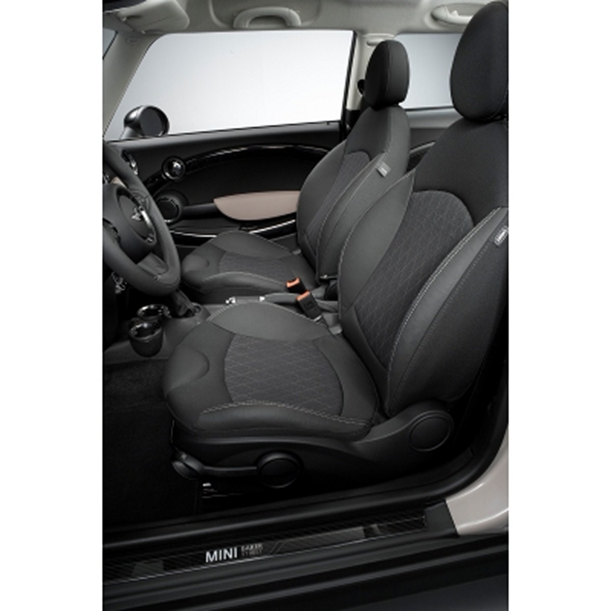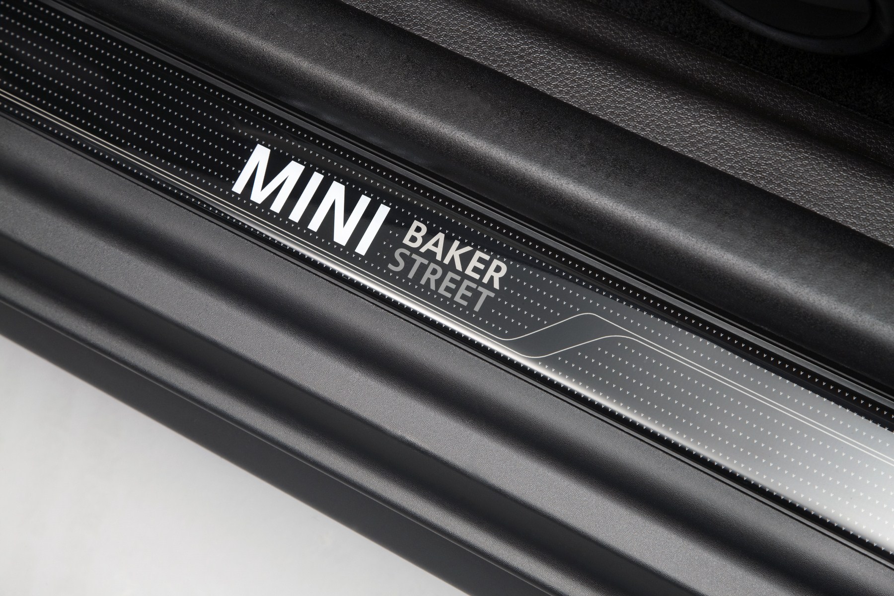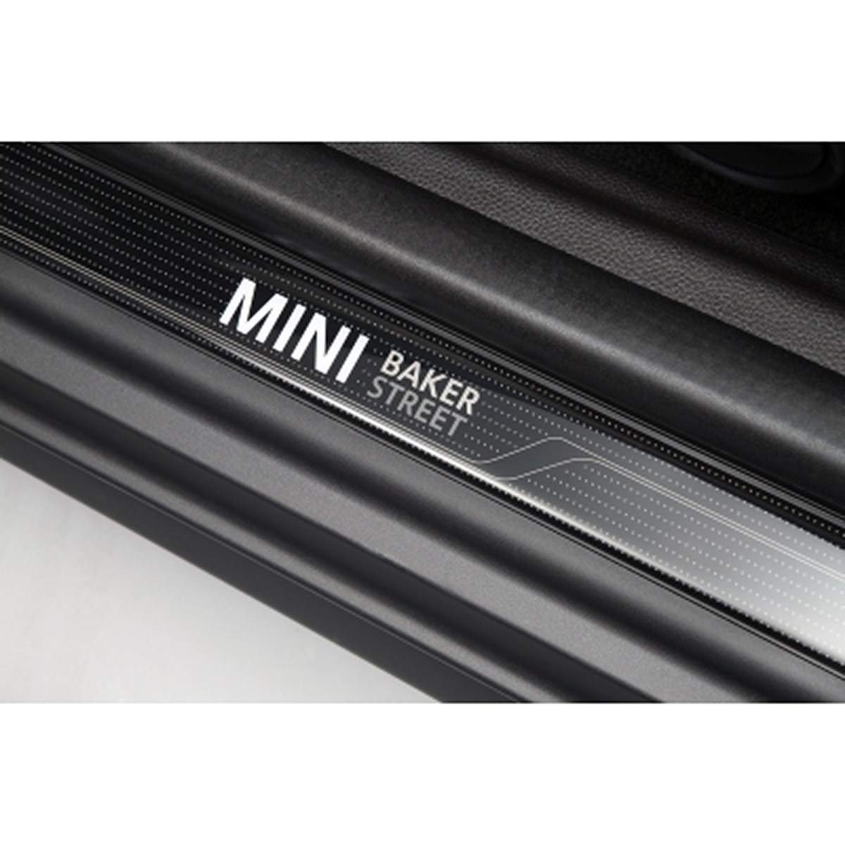 In the interior a fresh interpretation of the cloth/leather seats available for the standard MINI teams up with exclusive interior surfaces to create an unmistakable ambience. In traditional British style, the surfaces of the new seat variant in Cross Check Rooftop Grey light feature a diamond pattern. Cross Check Rooftop Grey light is also used for the surfaces of the cockpit and door trim and is combined with a Rooftop Grey light Colour Line. Light grey contrast stitching for the floor mats, gearshift/selector lever as well as the handbrake gaiters and seat tags which, like the door sills, bear “Baker Street” lettering, round off the array of bespoke interior features. The Chrome Line Interior package adds further lustre.