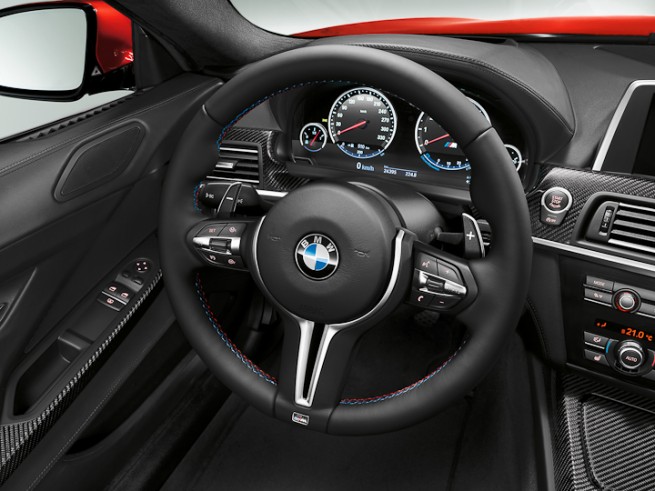 Besides new suspension kinematics, the suspension components themselves are made of forged aluminum to lower weight and increase strength. The chassis now contains more high-strength and ultra-high strength steel (meaning less can be used, thus saving weight). The wheels are also lightened, with slick forged alloy 20” rims on option, and for the first time ever on a mass-production BMW, the M6 will feature optional carbon fiber ceramic brake discs, saving a massive 19.4 kg(42.8 lbs) from the vehicle weight. Critically, the wheels, suspension components and brakes are all part of the ‘unsprung mass’ meaning they articulate up and down with the road surface. Lightening a car is always a great idea, but lightening unsprung mass is brilliant as it allows the tires to maintain better contact with the road surface – ultimately offering more consistent grip for the chassis to work with.