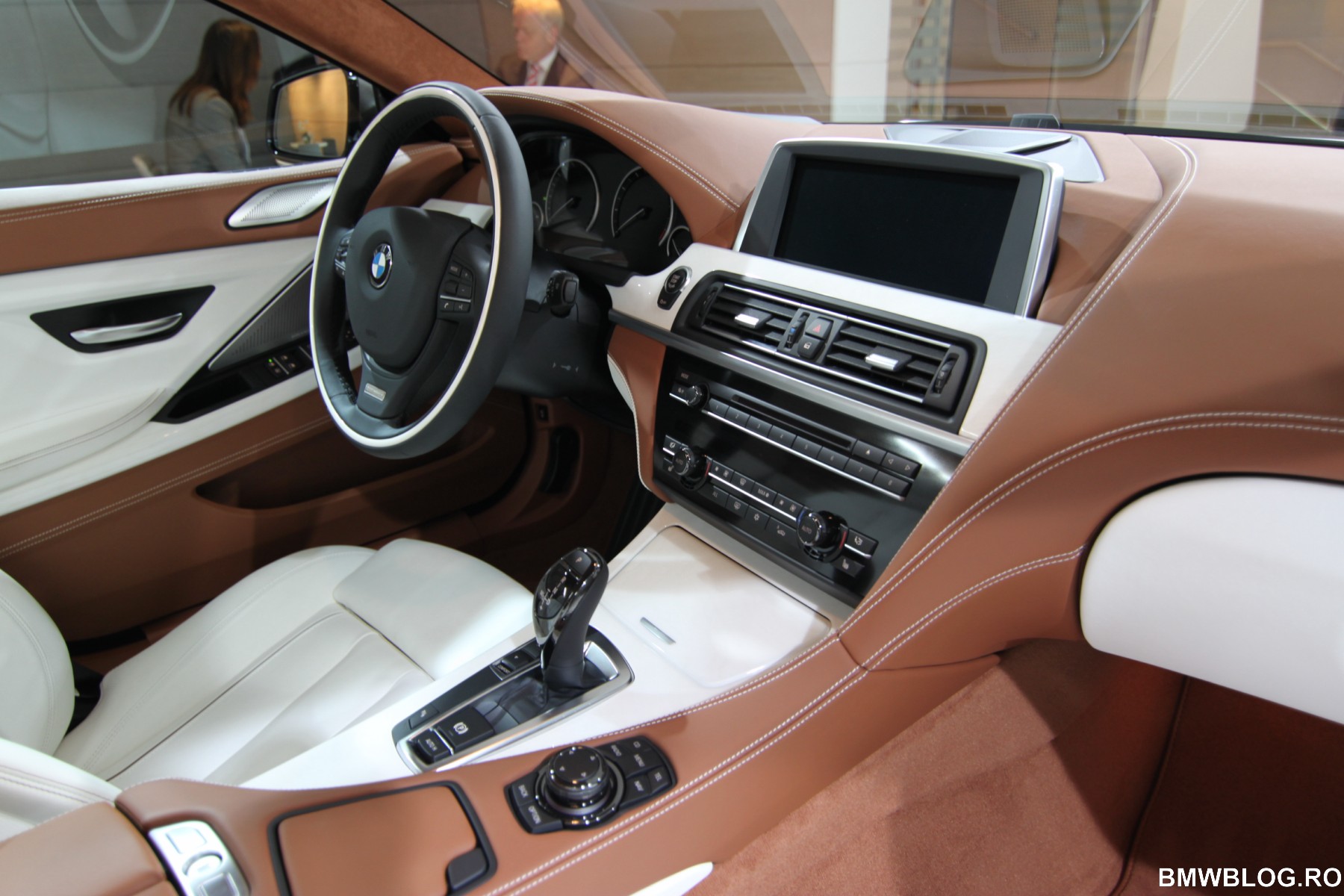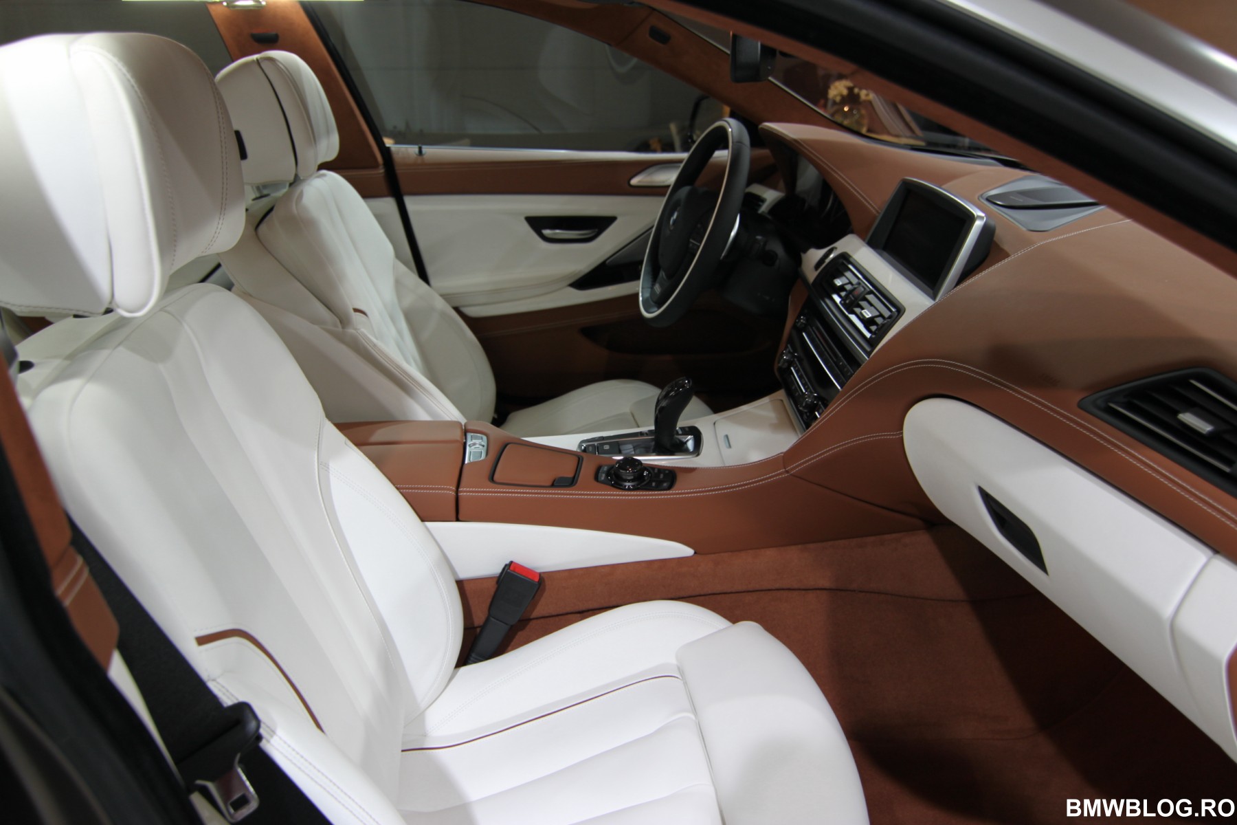 One of the highlights of the BMW Individual range of interior options is the Opal White full-leather trim specially developed for the BMW 6 Series Gran Coupe, combined with the interior color Amaro Brown. Here, the leather-covered instrument panel and Alcantara BMW Individual roof liner are also presented in Amaro Brown.
