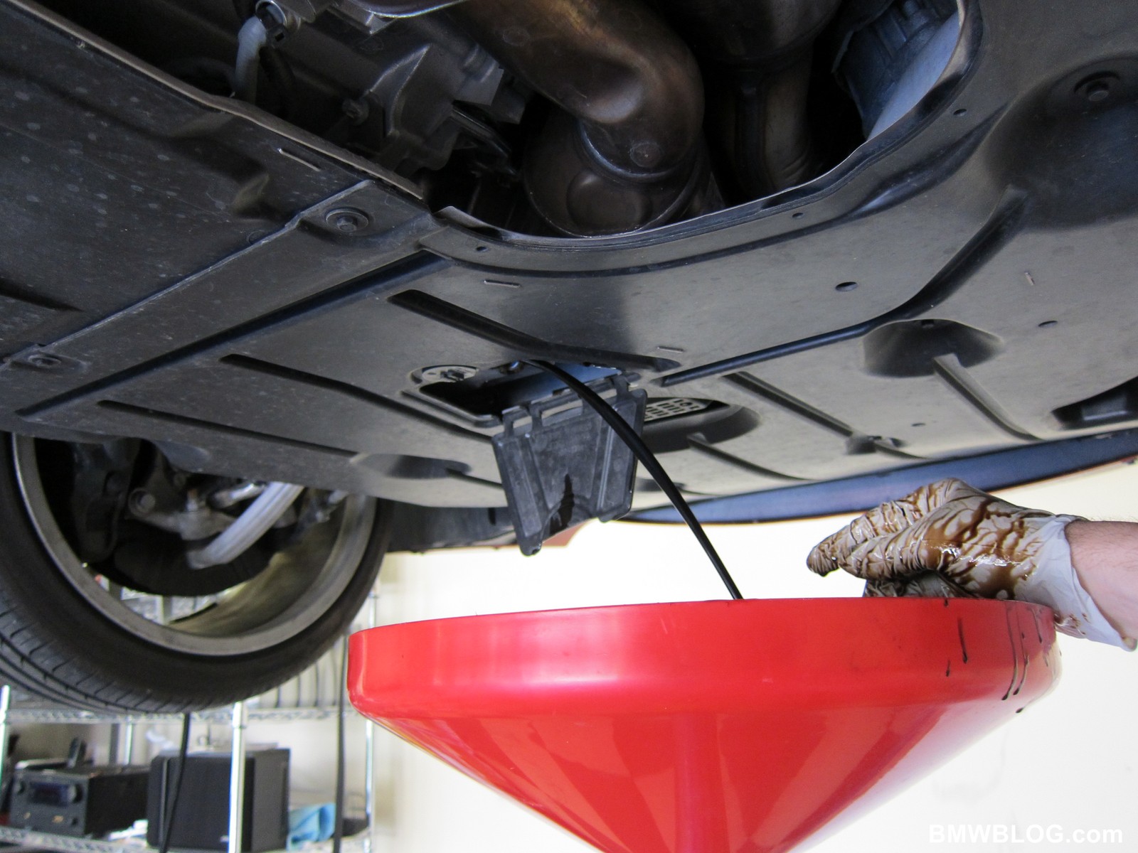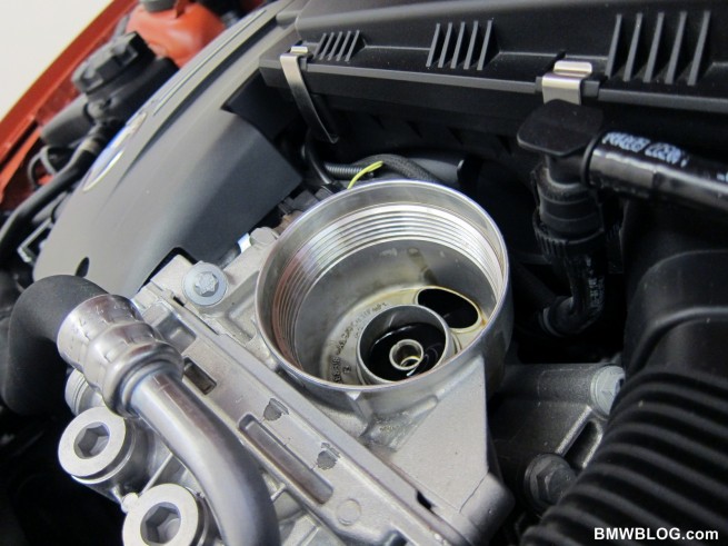 Now comes the tricky part. Not getting oil all over your hand – which you’ll see in the video I didn’t do a very good job of. I usually like to use a socket with a short extension, but that combo doesn’t fit in area BMW provides inside the trap door.