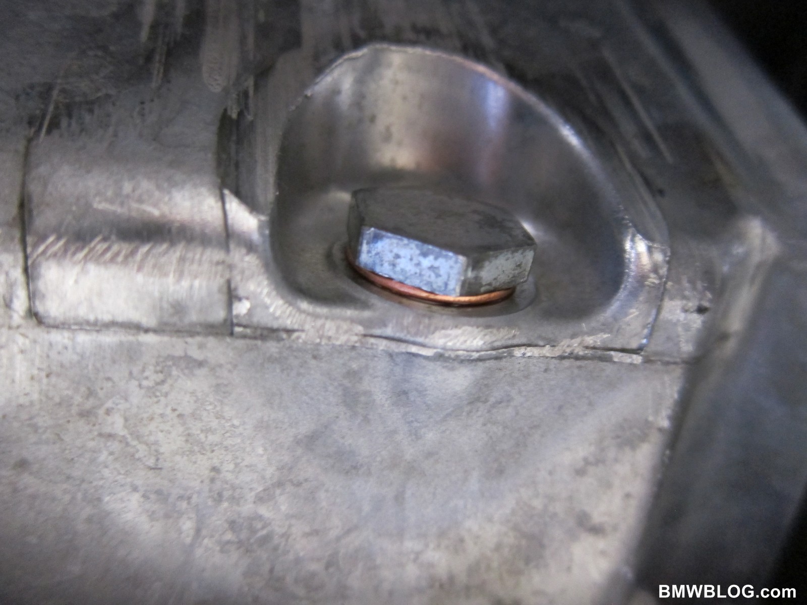 I like to let it drain for a while even with heated up oil. Once the oil has stopped draining, you can install the drain plug back in but make sure you’ve put the new copper crush ring first. Torque to 25 Nm. You want to be careful not to over-tighten and strip out your oil pan.