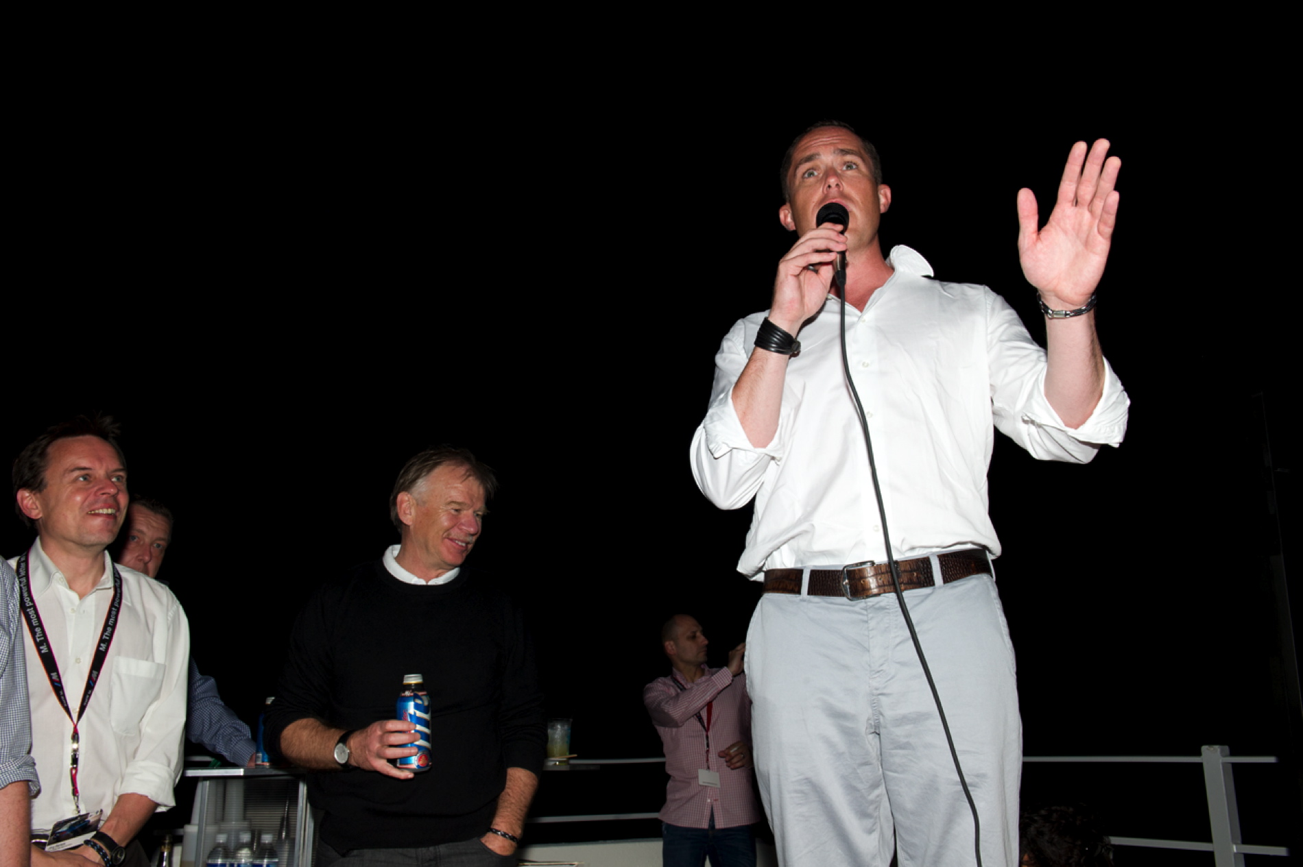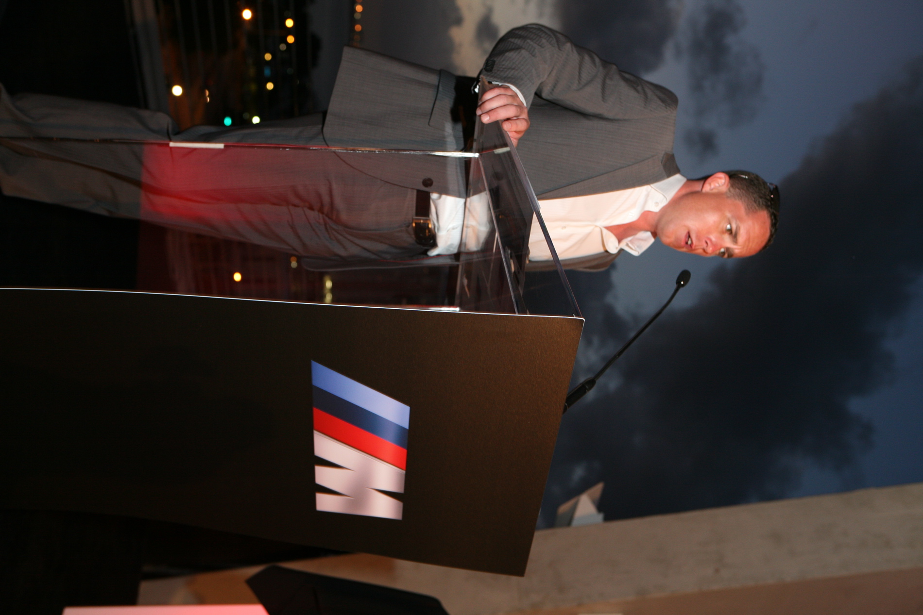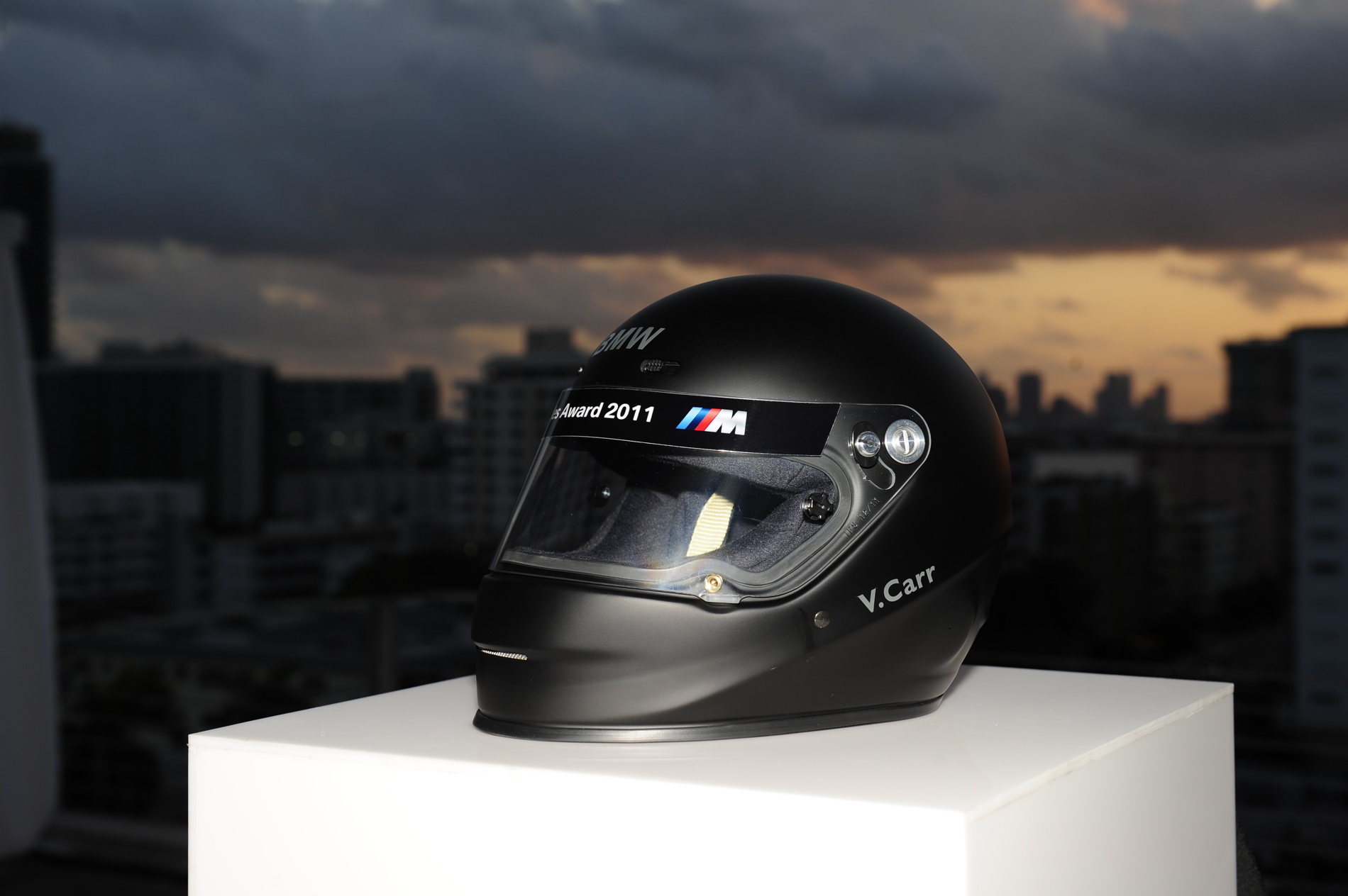 After a dinner prepared by celebrity chef Brian Aaron, the MC of the night, Brian Watts, kicked off the M Sales Awards ceremony where every one of the nearly one hundred top M sales reps from around the world were invited on the stage to receive a special gift: an M matte black, personalized, racing helmet.