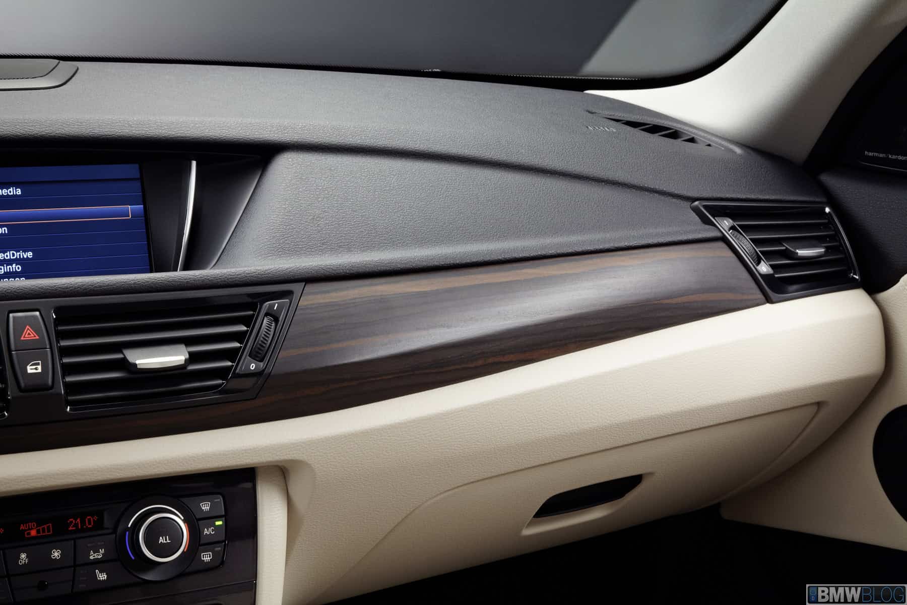 BMW Lines are available for all models, allowing drivers to tailor their new BMW X1 with individual style based on their personal preferences. The BMW xLine allows the sturdy versatility of the sub-compact BMW X model to be emphasized. It includes undertray elements for the front and rear fascias, side skirt covers, air intake and kidney grille slats in Titanium Silver matt finish, as well as exclusive 18-inch alloys in Y-spoke design. The distinctive charisma of the new BMW X1 is also reflected in the interior, starting with entry strips bearing the lettering “BMW xLine”, a leather-wrapped multifunction sports steering wheel, as well as exclusive interior trim strips in Dark Copper high-gloss and floor mats with color-matched piping. In conjunction with the BMW xLine, optional Nevada leather upholstery is available, with the exclusive color shades Terra and Oyster which are also used on the door trim panels and the lower section of the dashboard. The head rests feature a distinctive embossed “X”. As an additional option, interior trim in Fineline Bay matt fine wood finish is available exclusively in combination with the BMW xLine.